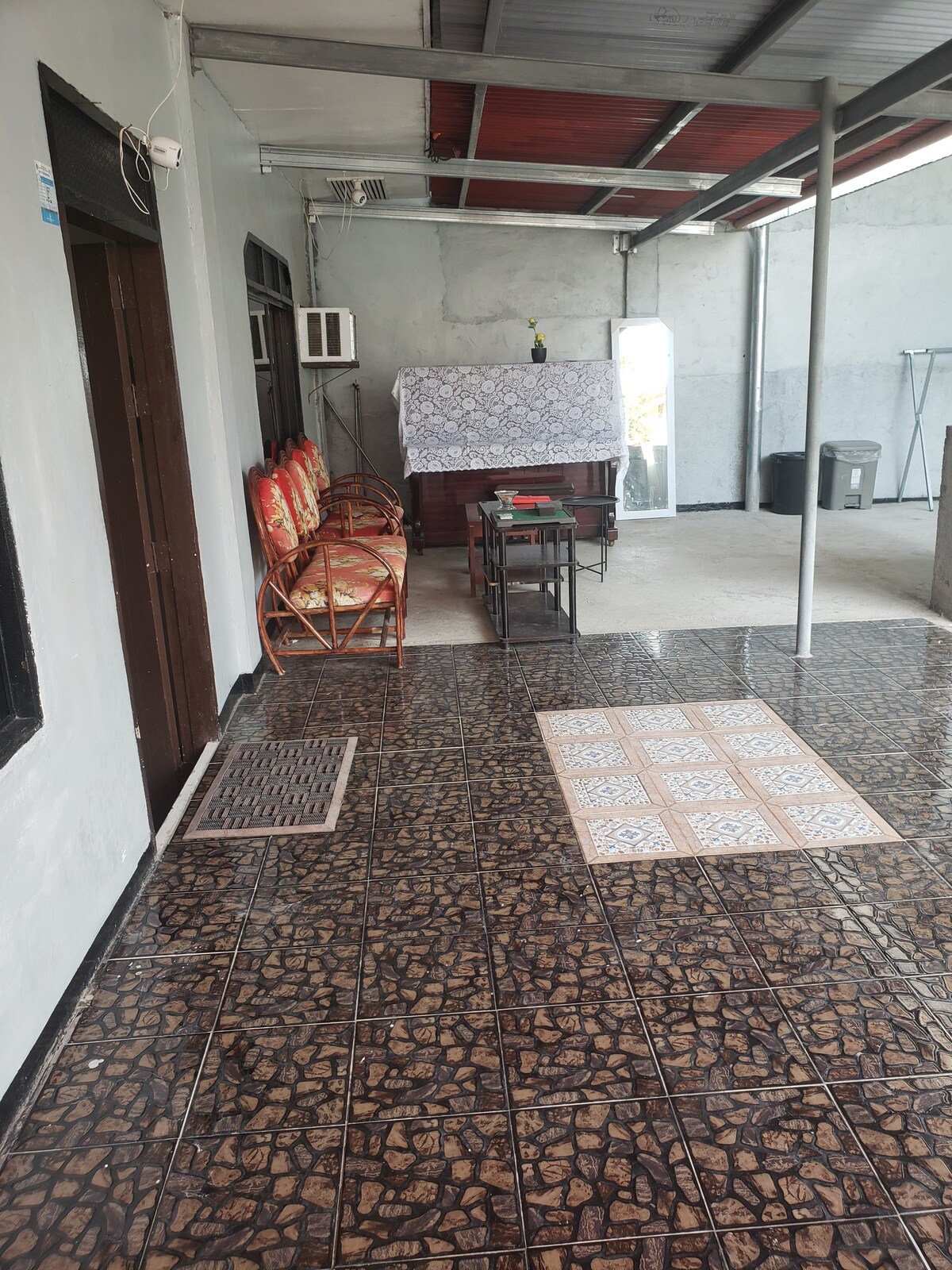 This is the Master’s bedroom of a newly constructed gated 2-BR building now open for lodging. Consisting of a King bed, a single pull out and a couch. You can enjoy the heated shower with pressurised water supply. Ample, very wide parking is available. Just a few steps from a cafe at the corner, a car wash, and a bakery. It is about 1 mile from the newly opened KCC Mall. The whole group will enjoy easy access to everything. Airport transfer can be arranged.