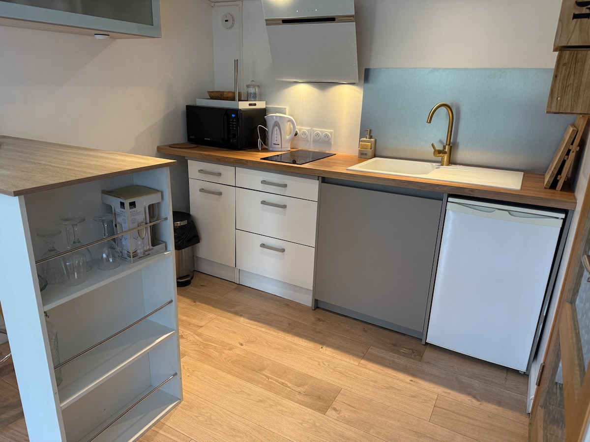 36 m2 studio, accommodates up to 2 people, equipped with a kitchen (oven, dishwasher, microwave, washing machine), separate toilet, bathroom. A 160 x 200 bed. South-facing terrace with barbecue. In the heart of the Audubon Marshes between St Étienne de Montluc and Coueron, we are located 17 km from Nantes, 40 km from the beaches of the Côte de Jade, 50 km from La Baule