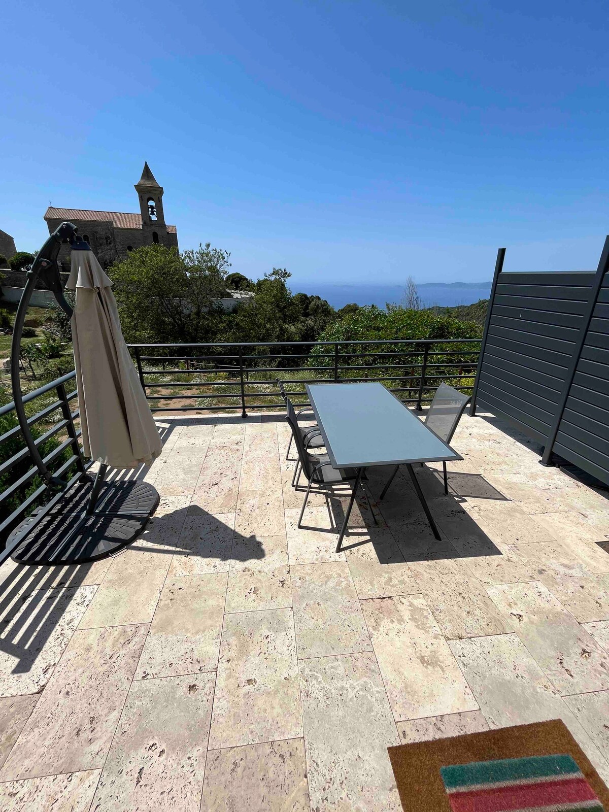 Cozy wooden chalet on private land with breathtaking sea views. Ideal for a romantic getaway or a peaceful stay. It offers a comfortable double bed, a sofa bed for a child (1.70 m), a modern bathroom and an equipped kitchenette. Outside, a pleasant living space with a stone barbecue and a private bocce court for moments of outdoor leisure. The intimate atmosphere and spectacular view will allow you to completely regenerate.