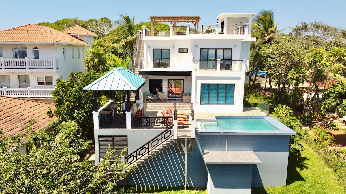 Experience luxury in this modern-coastal condo at Arihini Tower. Wake up to stunning sunrises, relax with views of the lush jungle, and watch cruise ships arrive. A perfect escape in West Bay, Roatán. Enjoy sunset on the rooftop, dip in the pool while enjoying the magnificent view to the ocean. Close to West Bay beach (4 min drive).