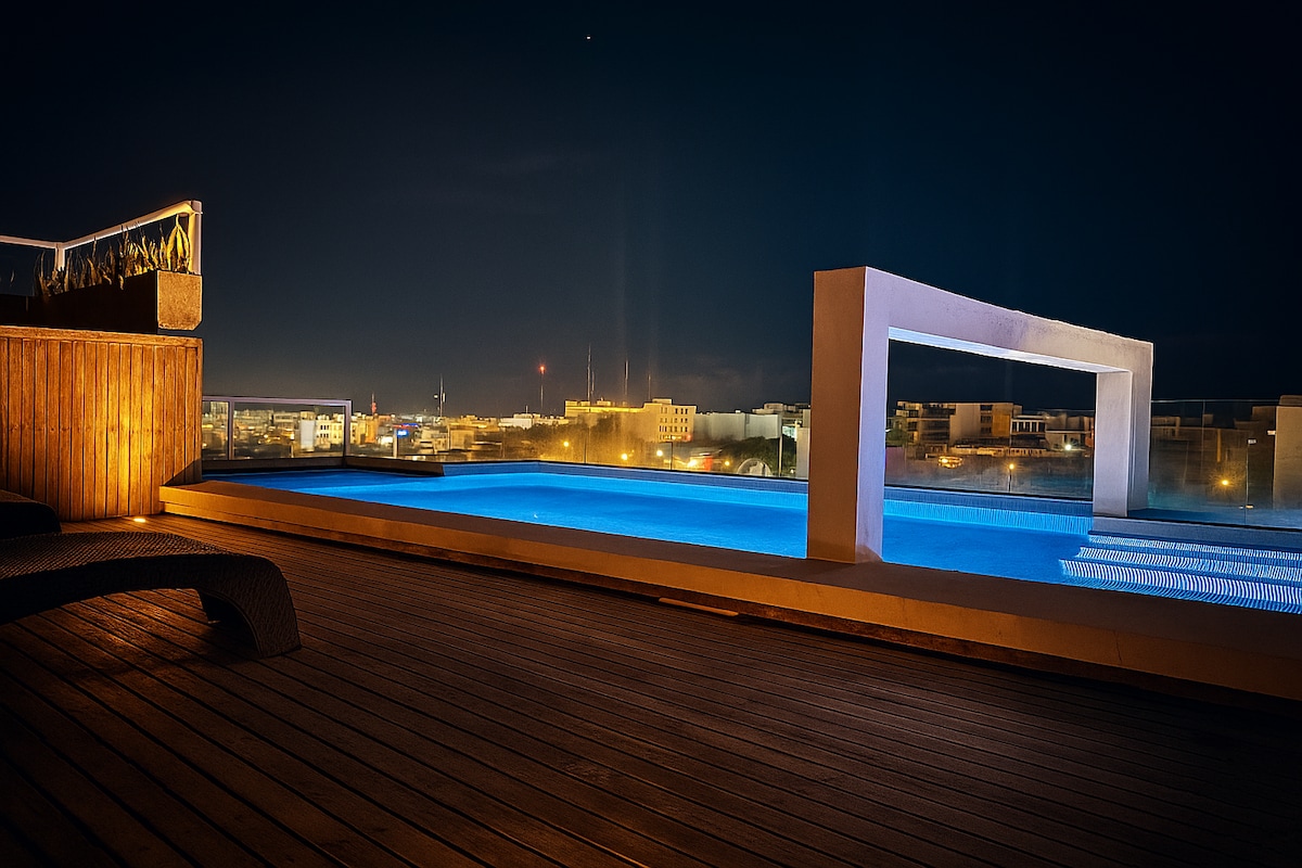 Modern, adults-only apartment in a quiet neighborhood just minutes from downtown. Guests love the peaceful setting and return often for the rooftop plunge pool, BBQ area, and daily housekeeping. Cruise the coast on free bikes or explore nearby shops and cafes. ✔ Rooftop Pool ✔ Starlink WiFi ✔ Free Bikes ✔ Full Kitchen ✔ Night Security ➕ 7-Eleven only one block away Bonus: 10% off scuba diving with top-rated Scuba Life Cozumel. Ages 12+ only.