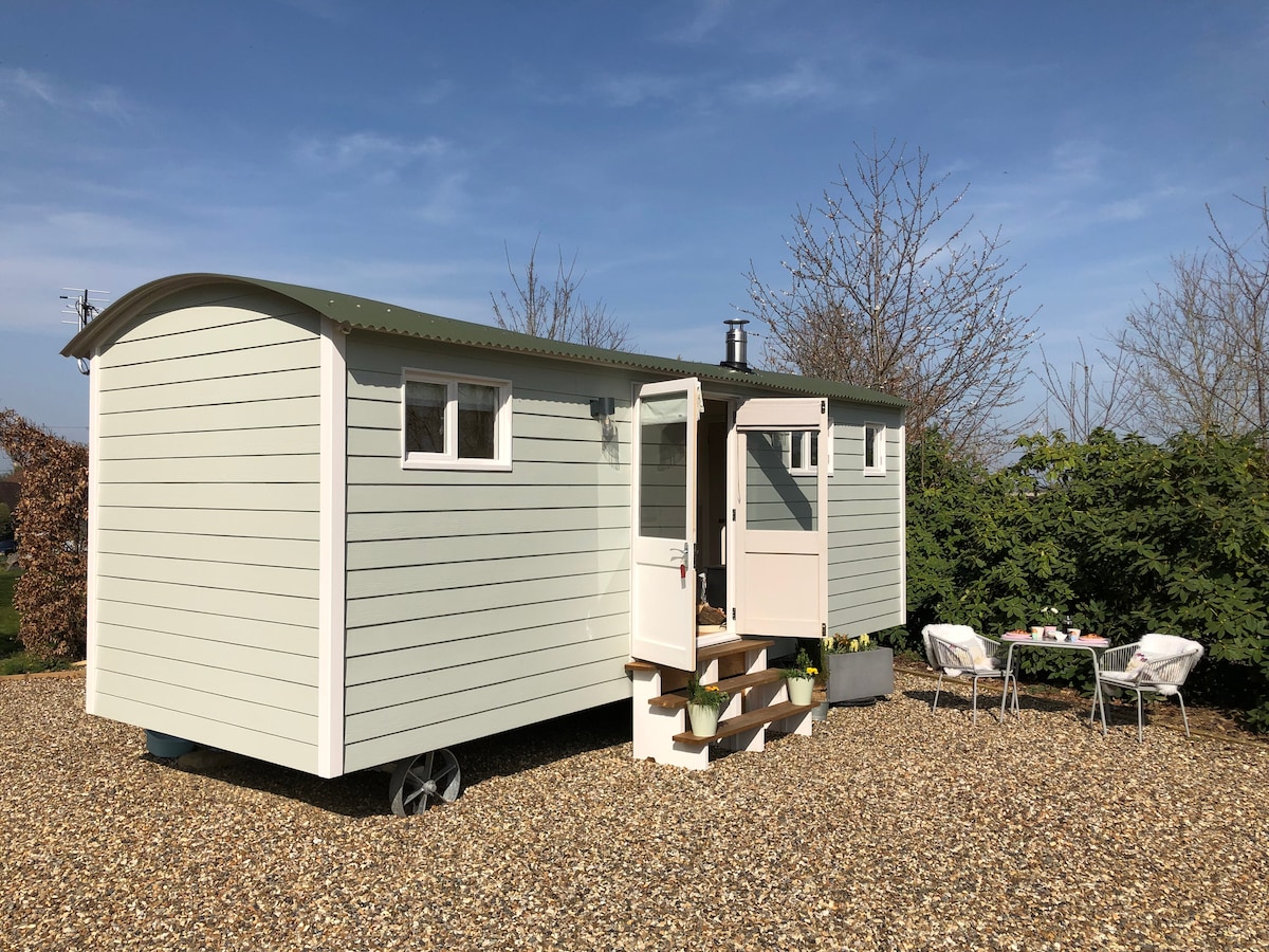 The Sheepcote, our brand new spacious shepherds hut, is based in the Kent High Weald Area of Outstanding Natural Beauty. It sits in its own south facing half acre garden with fruit trees, silver birch and a young oak tree. Outside there’s plenty of parking and an area with a bench, table and chairs where you can relax and enjoy the countryside, watch the buzzards fly overhead and in the evenings listen out for the soft hooting of our resident owls! Its the perfect place for a romantic break.