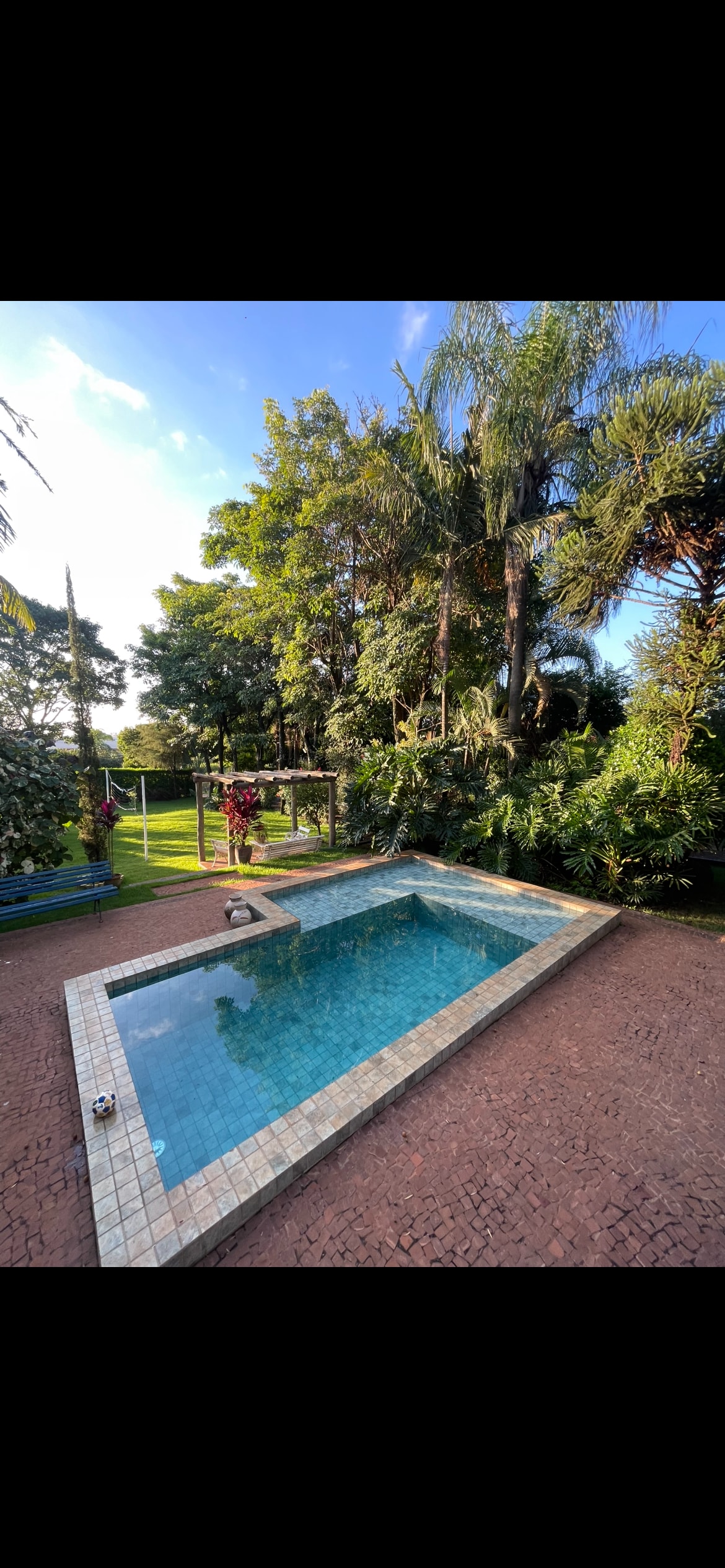 The farm is located in the Quinta da Boa Vista-A Condominium, which is closed and has 24-hour security. It is 3 km from the Iguatemi and Ribeirão Shopping Malls, 6 km from Taiwan and 1.5 km from Agrishow. Because it is in front of the highway that goes around Ribeirão, it is quickly accessible to all points of the city. 5,000 sq. meter plot. Air-conditioning in all bedrooms. Swimming pool (10x5), barbecue area. Activities: Swimming, Hiking, Bike Riding, Soccer, Beach Soccer, Volleyball, TV, Sound, Tennis Court (in the condominium).