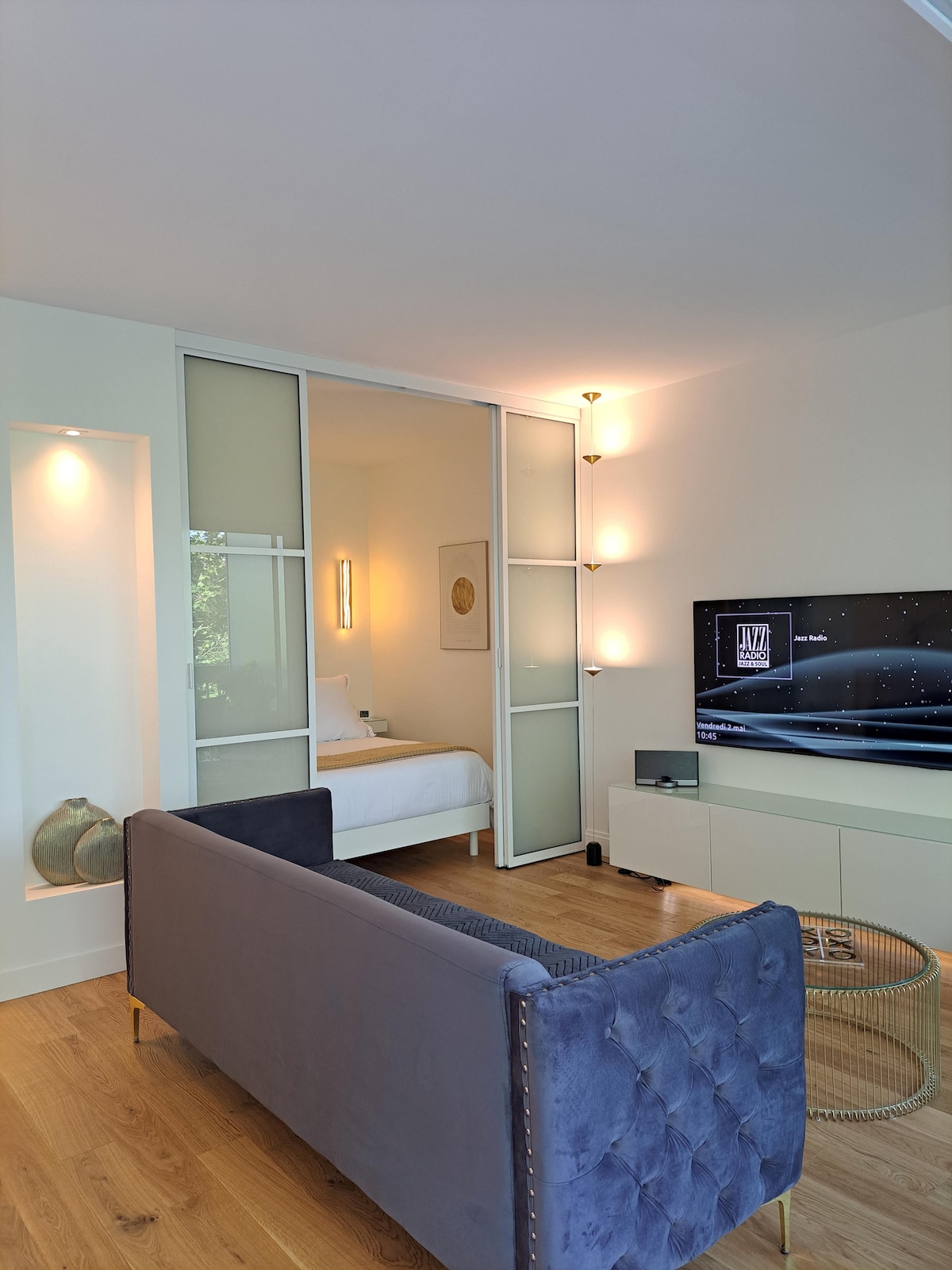 Choose a cozy, modern and ideally located apartment. In a quiet and pleasant area, close to all essential amenities and a few steps from metro line 8 "Pointe du Lac" allowing you quick and easy access to the capital. Bright living room with access to the balcony with a sofa bed and coffee area ☕️ Smart TV, high-speed internet and Netflix. Fully equipped kitchen, double bed room, with storage. Perfect for couples, friends, families and business travel!