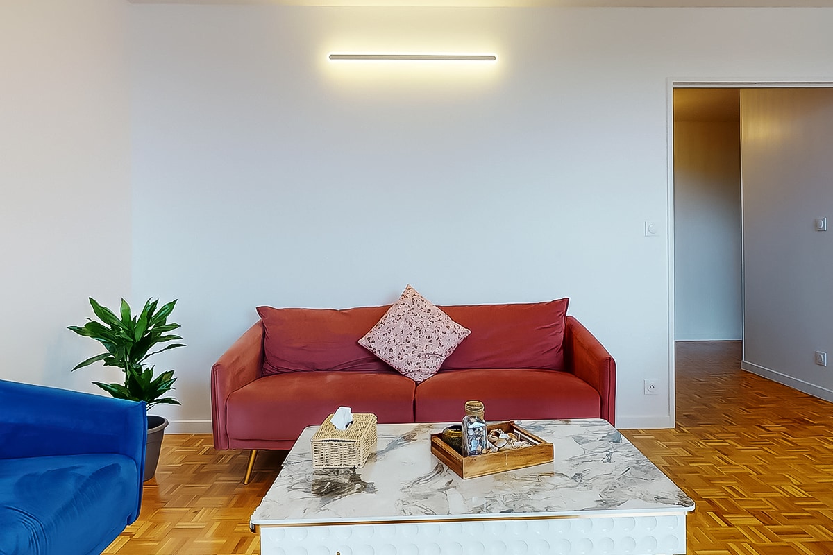 Choose a cozy, modern and ideally located apartment. In a quiet and pleasant area, close to all essential amenities and a few steps from metro line 8 "Pointe du Lac" allowing you quick and easy access to the capital. Bright living room with access to the balcony with a sofa bed and coffee area ☕️ Smart TV, high-speed internet and Netflix. Fully equipped kitchen, double bed room, with storage. Perfect for couples, friends, families and business travel!