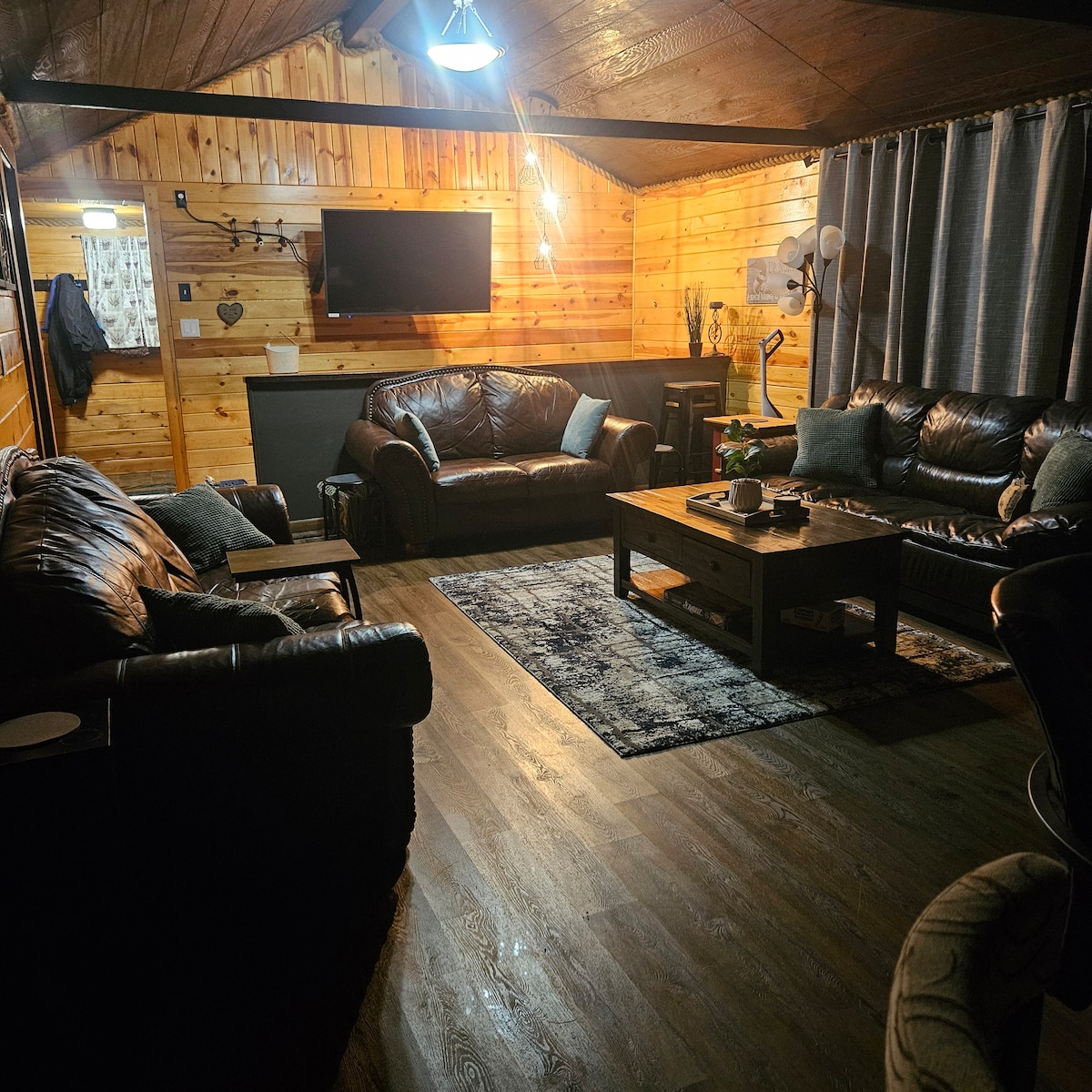 The Iron Willow cabin is just 3-4 blocks from the bike trails and Main Street. Main floor is an open floor plan with: fully-stocked kitchen, LR, 2 BR, 1 BA. Basement has: LR, 1 BR, 1 non-standard BR (no egress window), 1 BA and laundry closet. Enjoy 5 TVs, fast WIFI, a front yard deck with gas grill, picnic table, fire pit, games, fridge with ice & water, secure storage shed, off-street parking, self-check-in. Amenities galore - we want the Iron Willow to feel like your "home away from home"!
