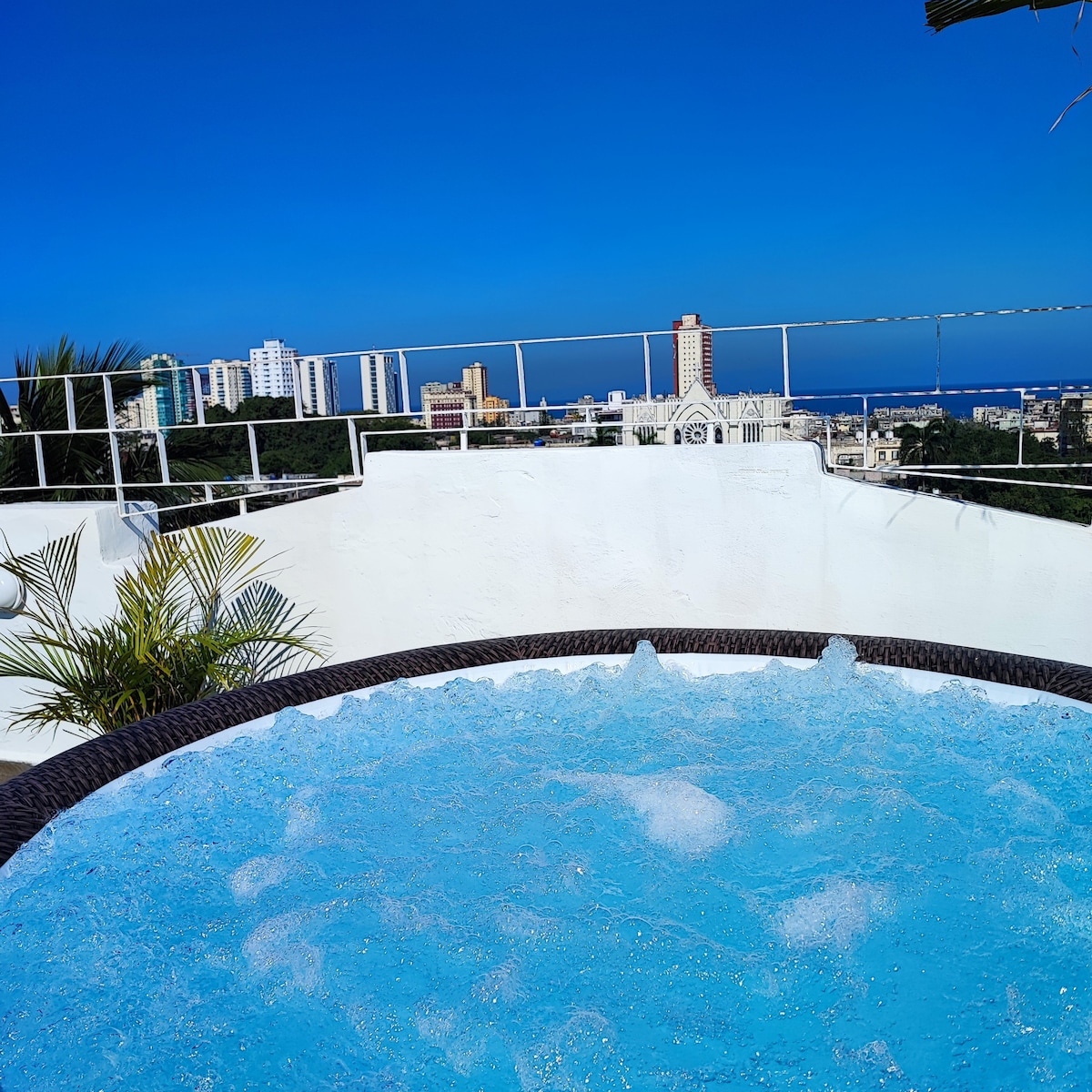 This nice penthouse is located in El Vedado quarter, just steps from ocean, a stroll from restaurants, bars, live-music clubs, theatres, galleries, major hotels, and a 5 minute drive from Old Havana. It offers 2 comfortable guest rooms with AC, WiFi, and private bathroom. There is a security box and a private balcony in one of the bedrooms. A cozy dining-living room leads to an amazing open terrace that makes yours the roof of the building with breath taking ocean and city views. Welcome!