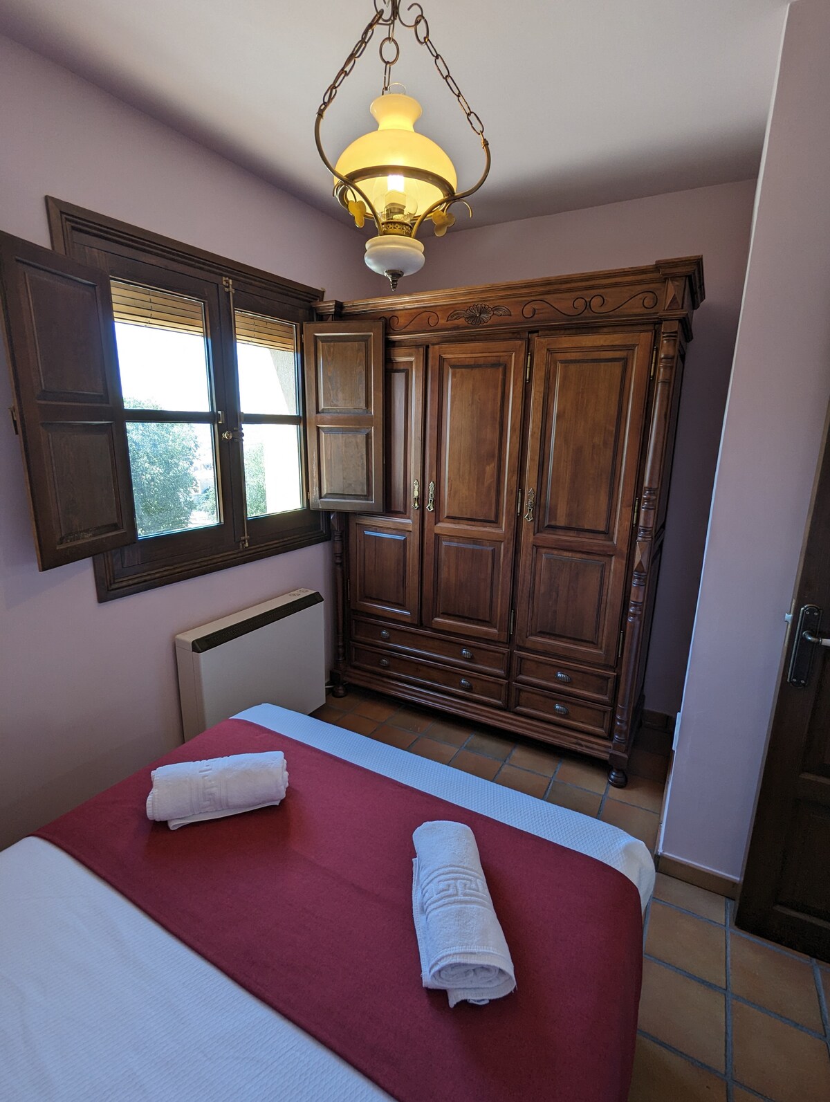Designed to offer versatility and comfort, our Room is ideal for couples with children, small groups, or travelers looking to share a stay without sacrificing comfort. Located on the first floor of a traditional building with no elevator, this room combines practicality with a warm and functional atmosphere. It is equipped with a comfortable double bed and a single bed, allowing it to accommodate different types of travelers. Children are not allowed.