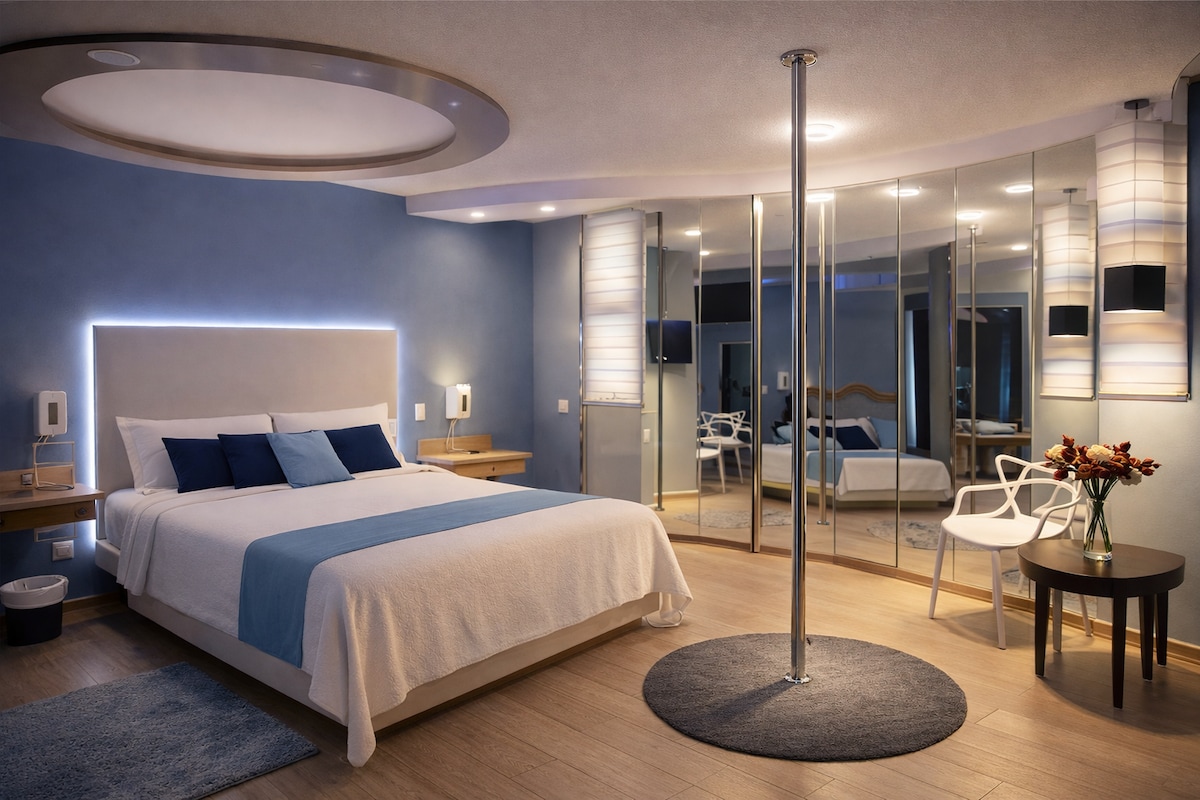 Vive una experiencia especial en una habitación romántica de lujo temática, diseñada para parejas que buscan privacidad, confort y un ambiente único. Disfruta de una estancia íntima con horarios flexibles, nos acomodamos a tu llegada y salida. Si lo deseas, podemos agregar decoración romántica para aniversarios o fechas especiales y personalizar tu experiencia para que sea inolvidable.