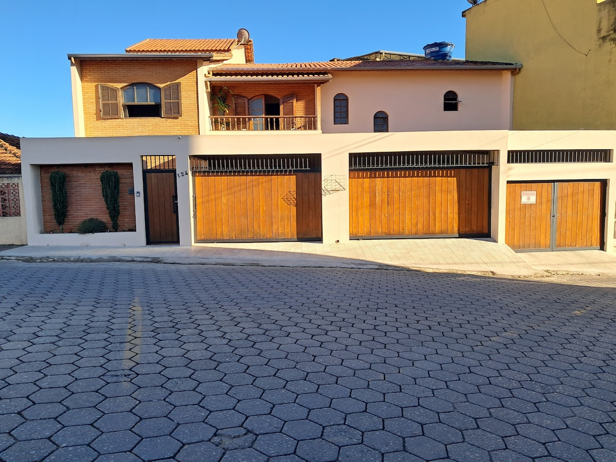 New environment, planned and designed to welcome guests looking for quiet nights. Price calculated for 2 people, with an additional R$ 80 per person/day (total limit of 4 people). Every space was made with great affection and with the intention of offering a family environment. I will be available for tips and future improvements. In the back is my father's handmade woodwork. Only he and the guest have access. All the furniture in the house was made by him. Location, 700 meters from the historic center.