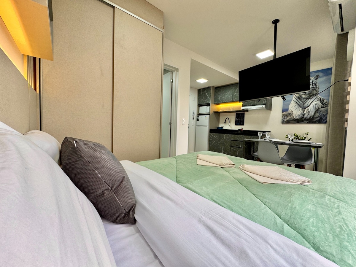 Welcome to our super modern studio in one of the best locations in the city, in Batel! Perfect for your comfort. It has excellent decor and sophistication, with Wi-Fi, hot/cold air conditioning, access to all the building's amenities, including a 24-hour laundry, a restaurant for delicious meals at your doorstep, and a super gym to keep your exercise routine up to date!