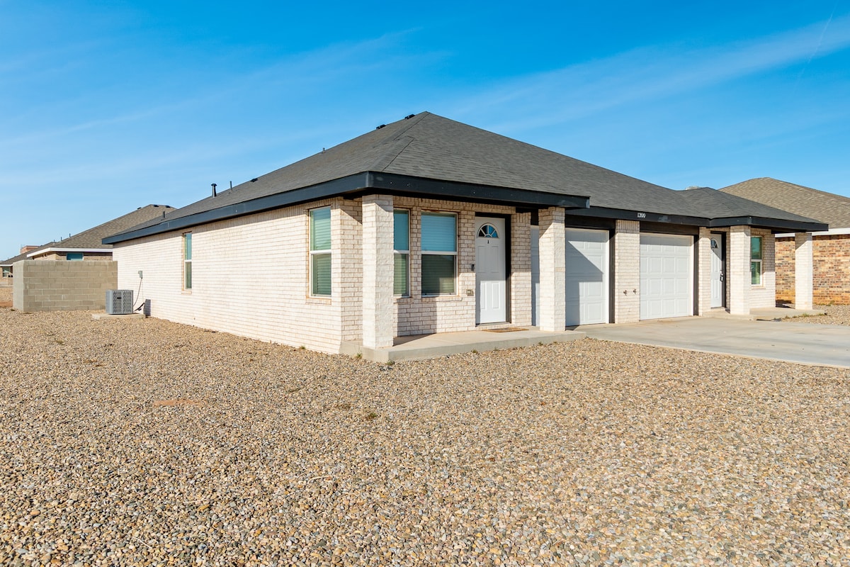 Enjoy a new construction within blocks to Plains Regional Medical Center & short drive to Cannon Airforce Base. 2-bed/1 queen+1 king. 2-bath/master on-suite+hall restroom. Washer/Drier. Granite. Pantry. All cutlery, toaster oven, coffee pot, food preparation, pots-n-pans included. Propane grill. Fiber optic internet. Smart TV x2. Dog bed. Infant pack-n-play/bassinet/play pen. If our Airbnb is hosting another family on your dates needed, please look @ our other @ airbnb.com/h/showtymerentals2