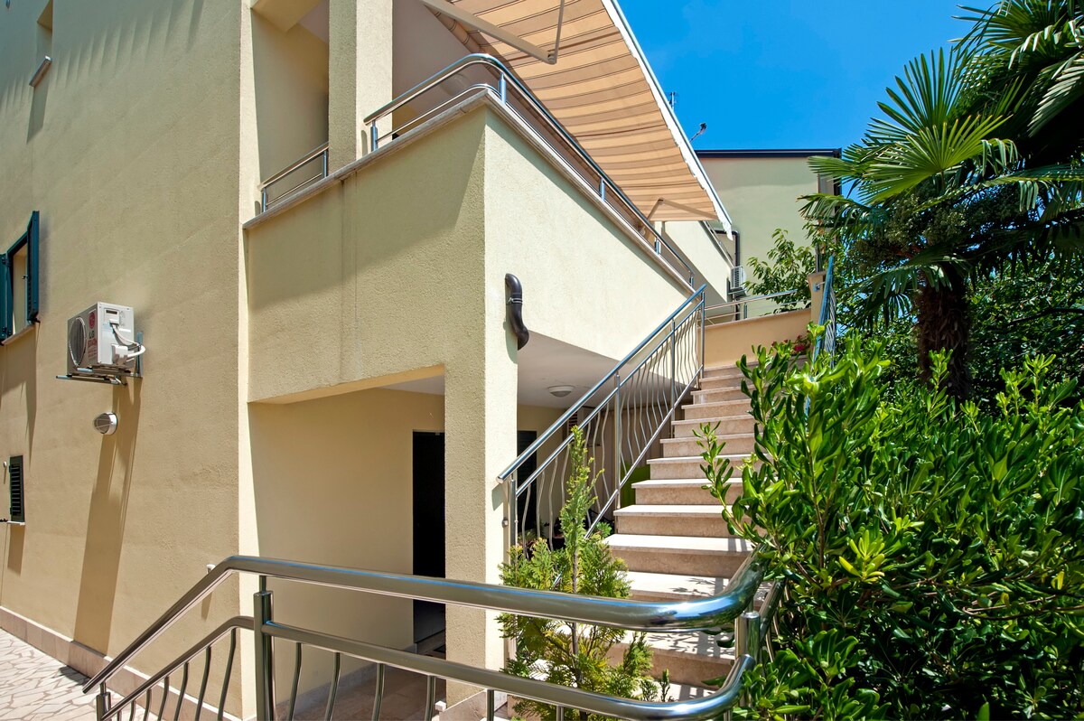 Apartman se nalazi u obiteljskom naselju, udaljen 5 minuta hoda od mora sa prekrasnim šetnicama,biciklističkom stazom,borovom šumom te raznim kafićima i restoranima pored mora.Do centra grada je svega 1,5 km, a u krugu od 500 metara nalaze se trgovine,apoteka, kafići, rastorani i ostalo.