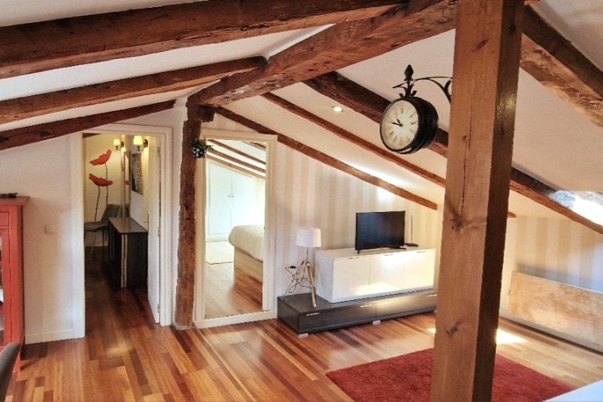 In the heart of the historic center and next to the Cathedral, this accommodation will allow you to get to know Burgos in an unusual way given its location. This spacious mid-19th century penthouse has two bedrooms, a living room, a dining room, an equipped kitchen, a bathroom, WiFi, a work desk, a TV and everything that makes you feel at home. 30 meters from Plaza Mayor, with a 50-meter drinking area, leisure and catering. Culture: Cathedral 20m., Palacio del Cordón 200m., San Nicolás 120m., Castillo Area 200m, Arco Santa María 100m.