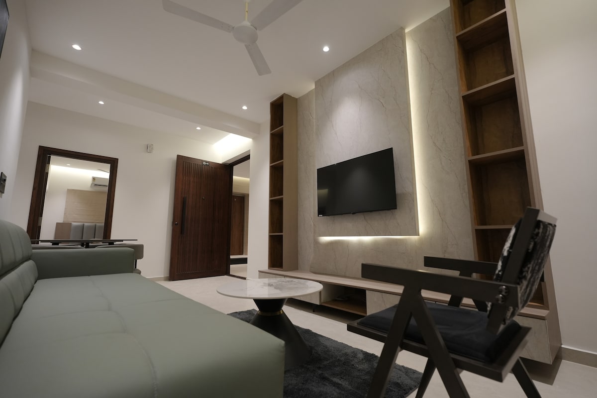 Urban Vibes Service Stay in Mannagudda, Mangalore offers a comfortable 3-bedroom apartment with 1 master bedroom with attached bath, 1 double bedroom, and 1 twin bedroom sharing a bathroom. Guests have access to a kitchen with oven, refrigerator, and utensils, plus a washing machine. Ideal for families or groups, the stay is located in a quiet area with easy access to markets, transport, and attractions. A perfect blend of homely comfort and convenience.