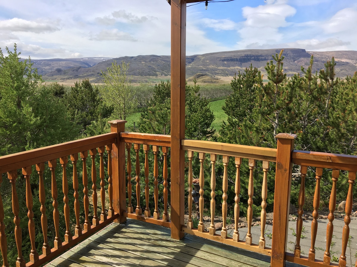 Welcome to Háafell Farm where we raise sheep, keep horses and have one friendly dog. Our private guest house is located 200 meters above the farm, up the mountain at 130 meters above sea level. It is a recently built (2020), 100 square meter, modern “turf house style” house. Háafell means “The High Mountain” and has a long river that cascades down its side with several tiers of waterfalls. It is a five minute walk to our canyon and it is possible to take a cold bath in one of the waterfalls.