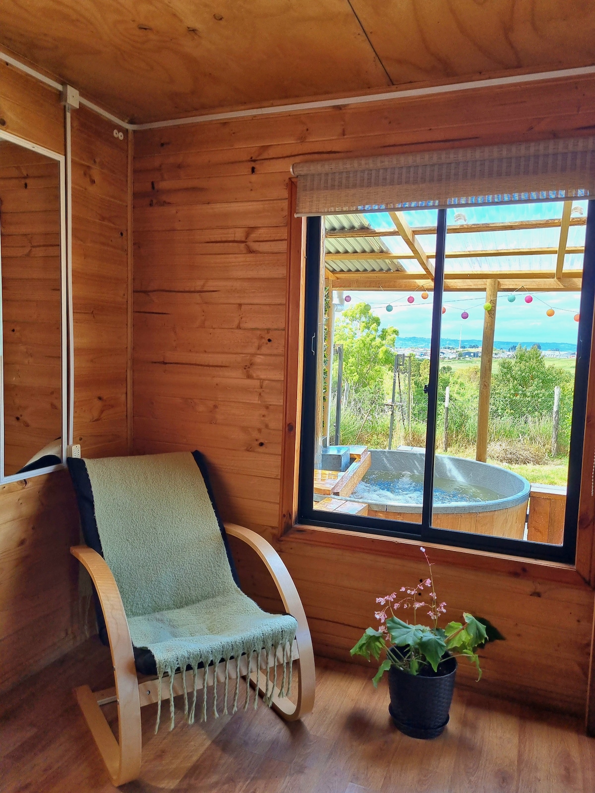 Puente Palos is located in the beautiful sector of San Pedro, in the heart of the Chilota mountain range, about 25 kilometers from Castro, 20 kilometers from Mocopulli airport and 25 kilometers from Dalcahue. We offer you disconnection and total relaxation in the middle of the forest, just meters from rivers and lagoons. We are in the middle of the La Costa Chilota mountain range. From the tub you can enjoy the harmony of nature. Puente Palos is a place where the clouds merge with the trees.