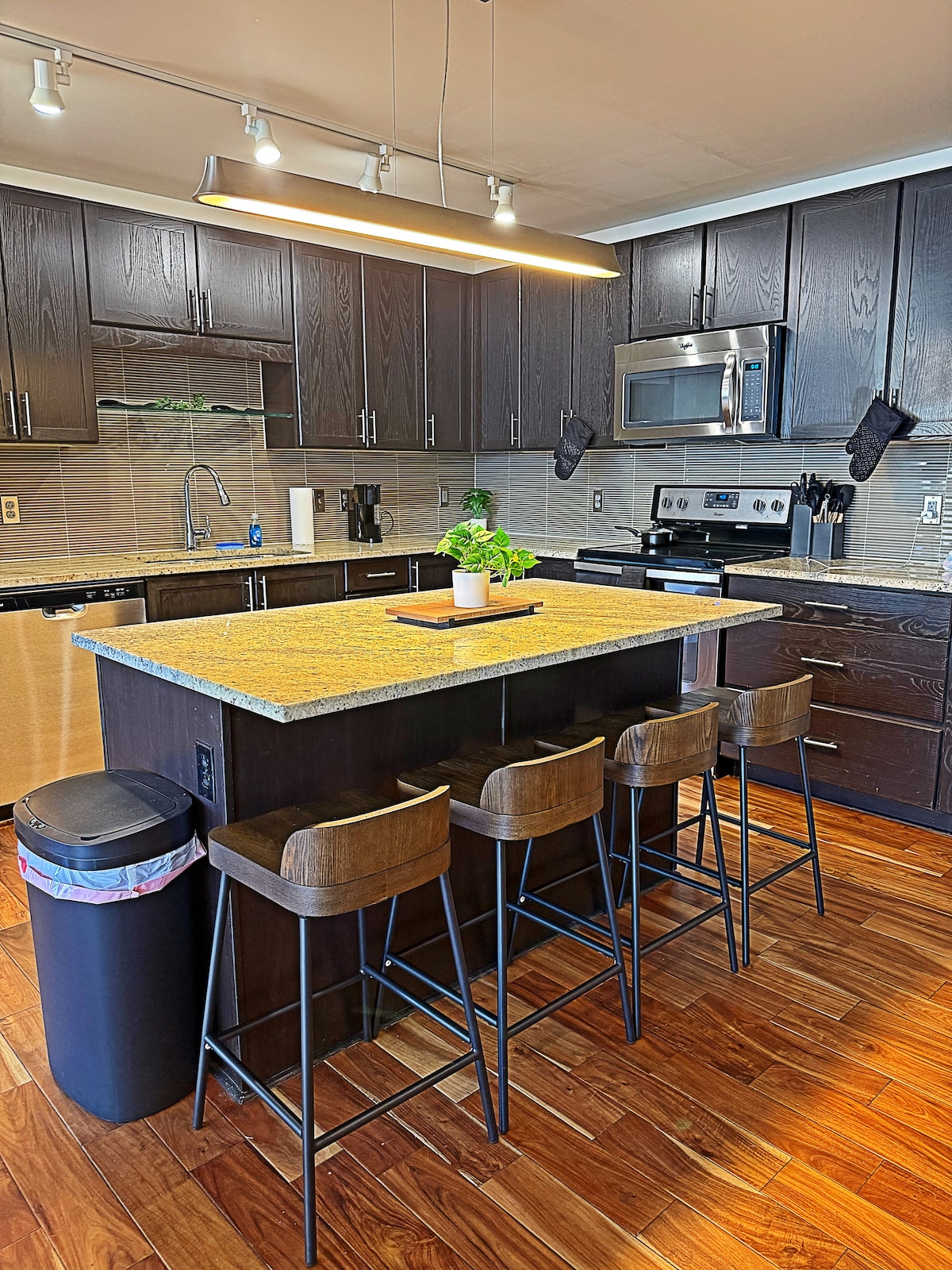 Where 1990s Tarantino grit meets slick 1920s luxe. This 5th-floor lookout isn't just a stay; it’s a movie scene. A high-contrast studio blending eclectic charm with custom concrete and graffiti edge. Level up on the PS5, throw down in the kitchen, or make business moves via fiber wifi and iMac. Retreat to a King bed with natural linens that sleep like sweet dreams. It’s the Top 1% experience—an artsy, curated, Boogjie hideaway perched above the Dallas hustle. Your action hero loft awaits. 🖤