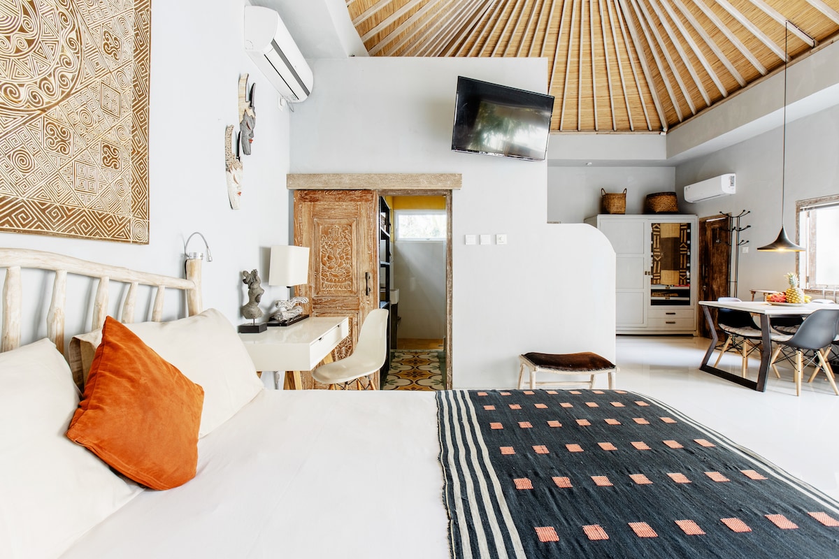 Escape to your Bali dream! This charming Bali one-bedroom apartment has a perfectly central location in the heart of Canggu, just a short pleasant walk to legendary beaches like Echo Beach & Batu Bolong. Immerse yourself in Canggu's famous electric vibes – trendy cafes, stylish boutiques, & incredible restaurants are literally at your doorstep. After surfing or exploring, unwind in your cozy, stylish & well-appointed private space. Experience the best of Bali in this vibrant & convenient haven!