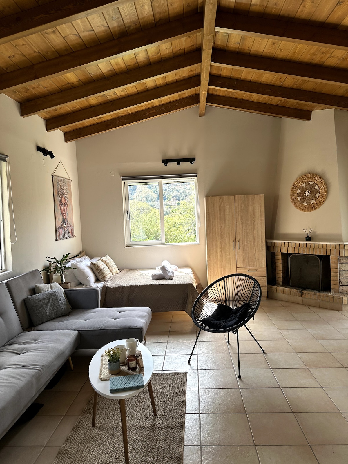 An apartment right in the middle of Crete so you can tour the whole island. Within walking distance of the apartment you can find deserted beaches, quiet traditional villages and endless dirt roads for a walk, while two major cities are not far away. Heraklion is 35 km and Rethymno 42. The apartment has a comfortable courtyard. The sunset from the courtyard is literally amazing.The apartment has wifi, smart TV, air condition, washing machine and anything else that makes the accommodation easier.