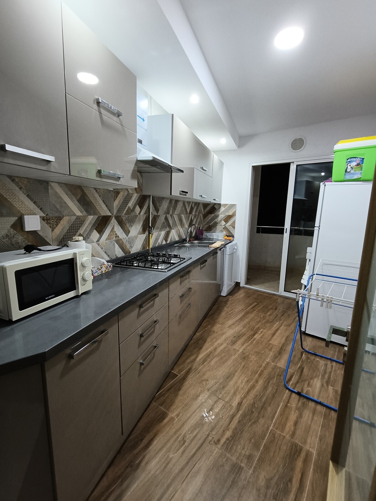 Get closer to your loved ones in this family-friendly accommodation. This is a luxurious, well-equipped 120 m2 apartment that has two spacious bedrooms with a dressing room. The living room opens onto a large balcony. The residence provides residents with a gigantic swimming pool with a space dedicated to children. Ideally located, this space combines modern comfort and authentic atmosphere, with decorative touches inspired by the mythical cities of Tunisia such as Sidi Bou Saïd and Hammamet.