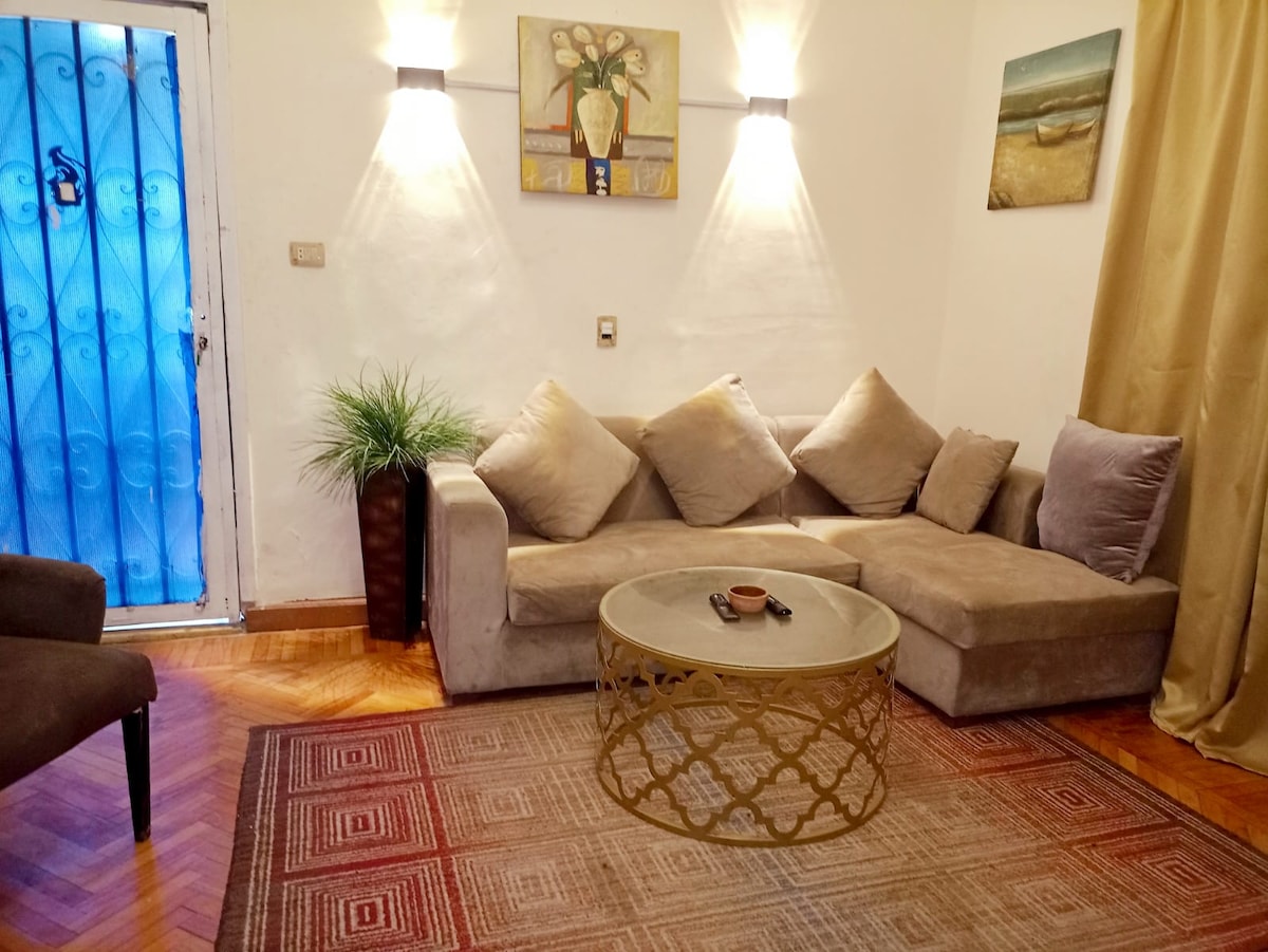 This stylish place to stay is perfect for group trips. -Experience luxury and serenity in this spacious 36th-floor apartment, offering breathtaking views of Cairo's skyline and the iconic Nile River. Thoughtfully designed, the apartment blends vintage charm with modern comforts, creating a perfect retreat for families or professionals. Relax in the elegantly furnished living area, dine in style, or enjoy the stunning nighttime views from the private balcony.