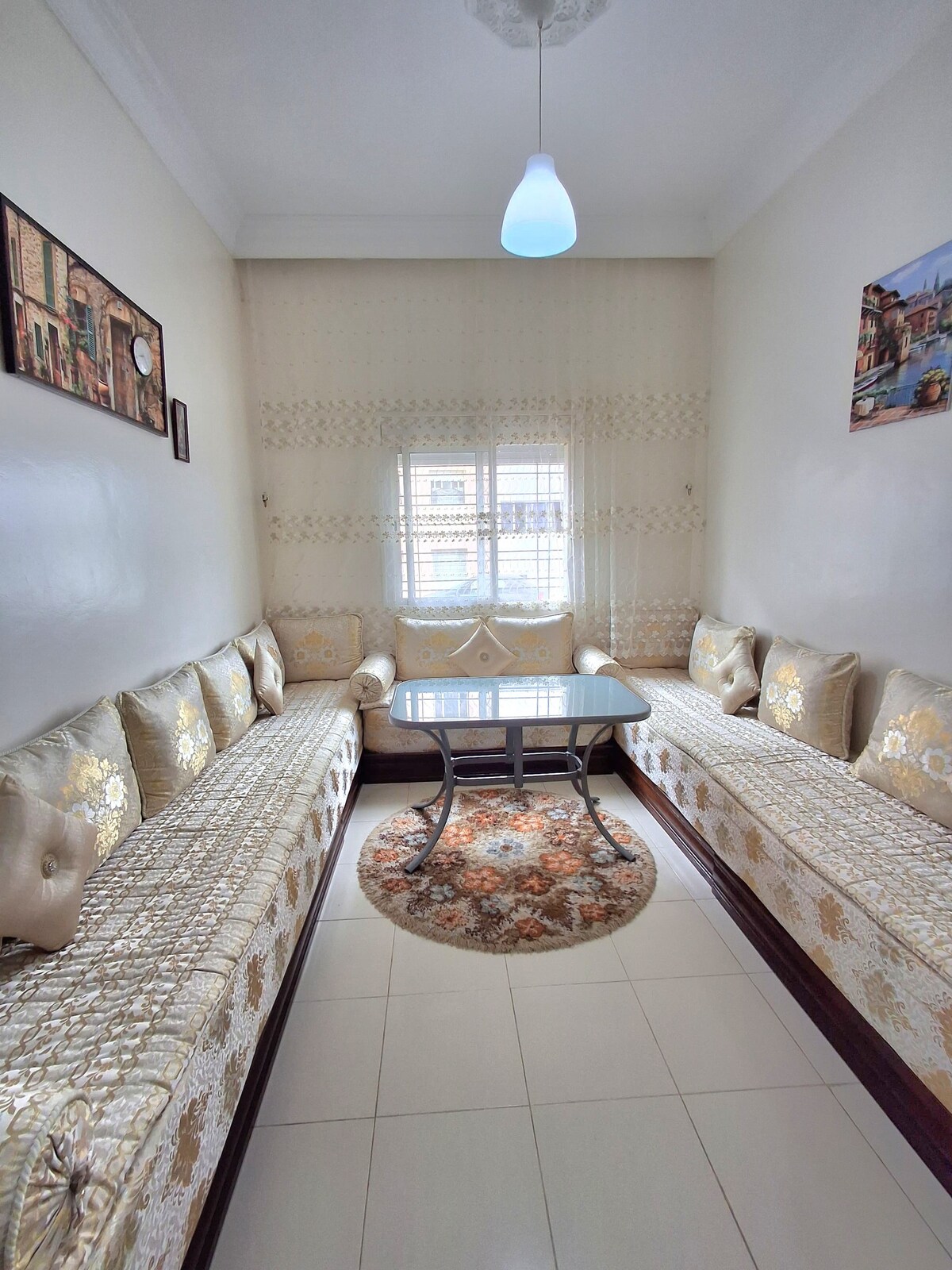 Ideal apartment for families, couples or business travelers. 2 bedrooms: 1 double bed 1 single bed Living room + Dining room (6 people) Equipped kitchen with essentials Hot shower, Toilet, mirror, impeccable cleanliness 2 balconies + 1 terrace Air conditioning, free Wi-Fi, smart TV Elevator (apartment located on the 1st floor) Quiet and safe neighborhood, 15 minutes from Mehdia beach and 5 minutes from the city center Private driver available on request Scooter rental