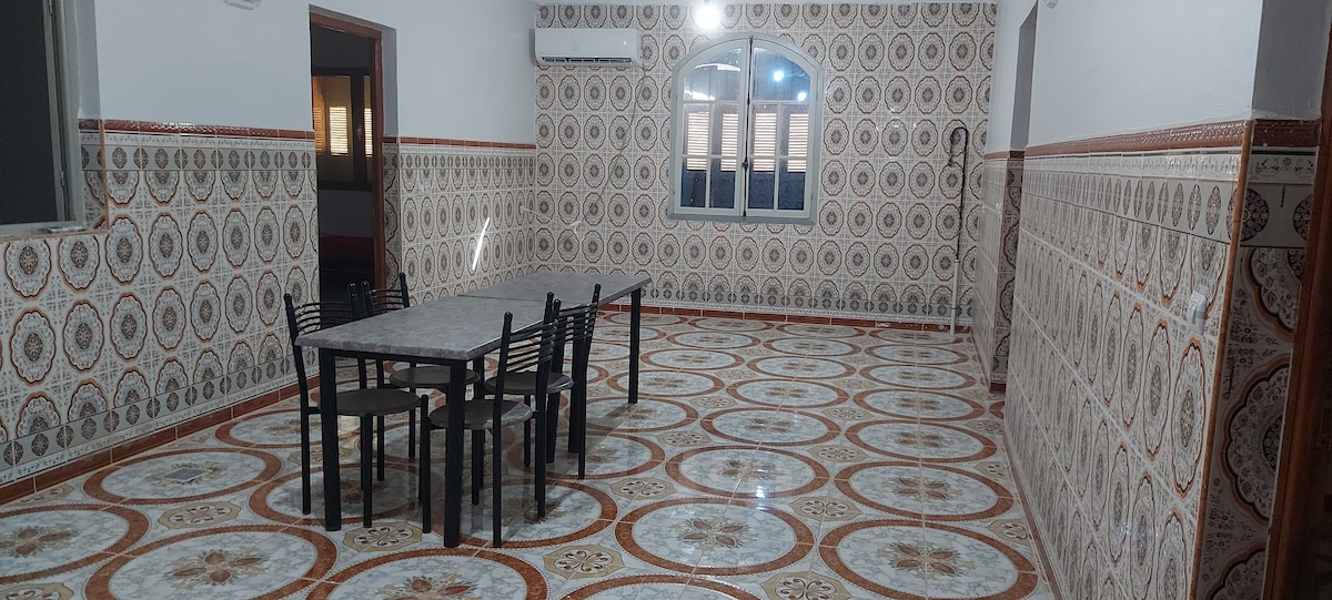 This family accommodation located in the city center close to all the necessary amenities (Supermarket, Market, Restaurant, Shops, Various Stores..., Hammam, Pharmacy, Hospital) The accommodation is equipped with all comforts (TV, kitchen, Shower, Large Bed...) Air conditioning and Heating, Free WIFI, Free secure parking, Relaxation area and Barbecue... on Terrace //Close to several beaches: B'hira 19 min, Bekhata 15 min, Sidi-youchaa 30 min, Porsaile 40 min// Safety and Calm Absolutely Guaranteed.