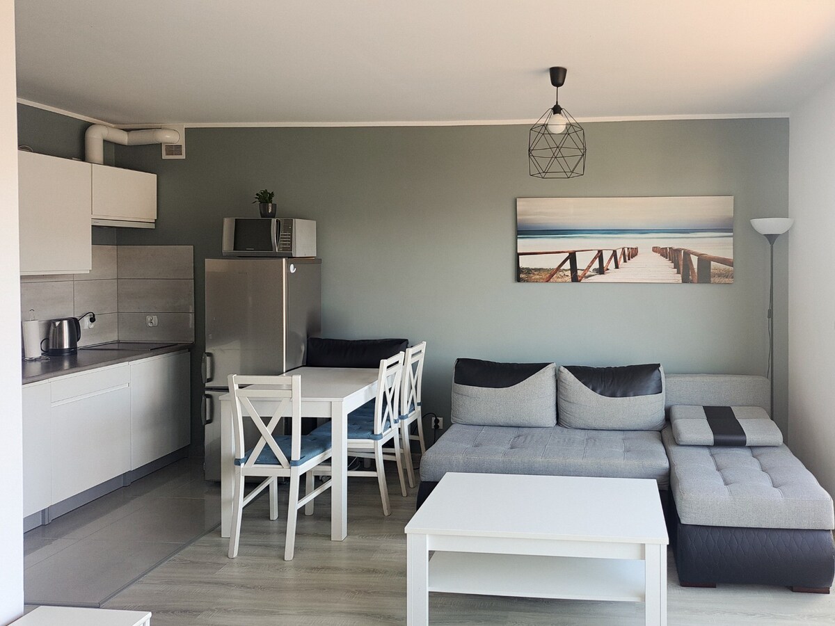 Make some memories at this unique and family-friendly place. Great apartment in Koszalin. Living room, bedroom, kitchen, bathroom, hallway. Close to the center, park, water park, shops, restaurants, playgrounds, public transport, fully equipped, everything you need, as in your own apartment. In the bedroom, a 180x200 bed. In the living room, there is a large sofa bed. In the bathroom, there is a large shower with a rain shower and a thermostatic mixer. Washing machine. We accept small pets. We charge a refundable deposit of PLN 500