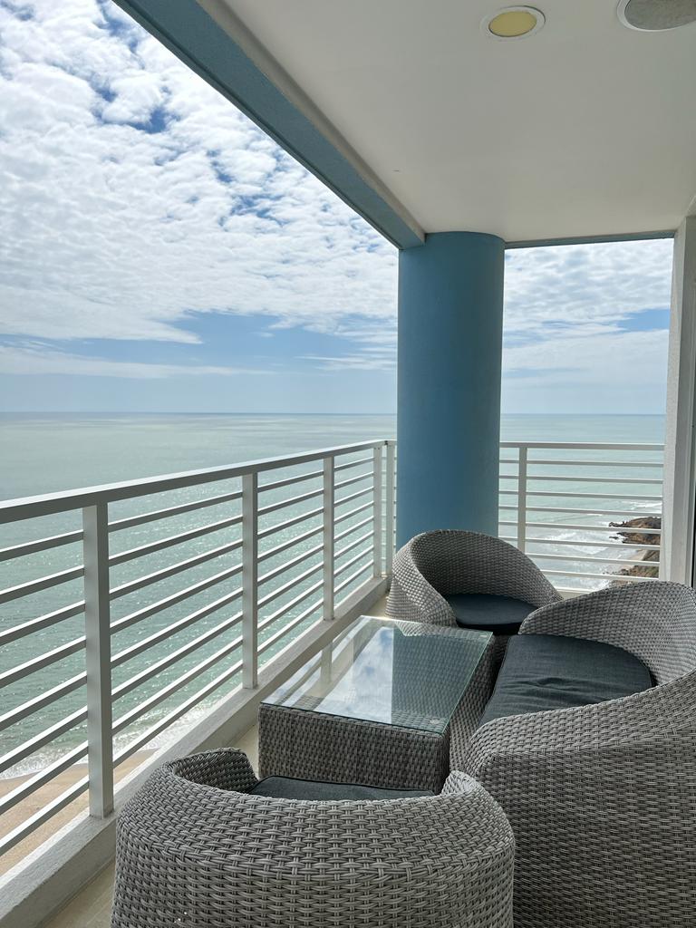 Apartment with a spectacular view in one of the highest floors No. 18 of the Mediterranean Tower of the Ocean Beach Club Hotel & Resort, located just 55 minutes from Guayaquil, and 5 minutes from the center of General Villamil Playas, considered (interesting fact: Playas has the second best climate in the world declared by UNESCO) ideal to have fun with family and friends celebrate birthdays, wedding night, anniversaries in a cozy, magnetic and great atmosphere
