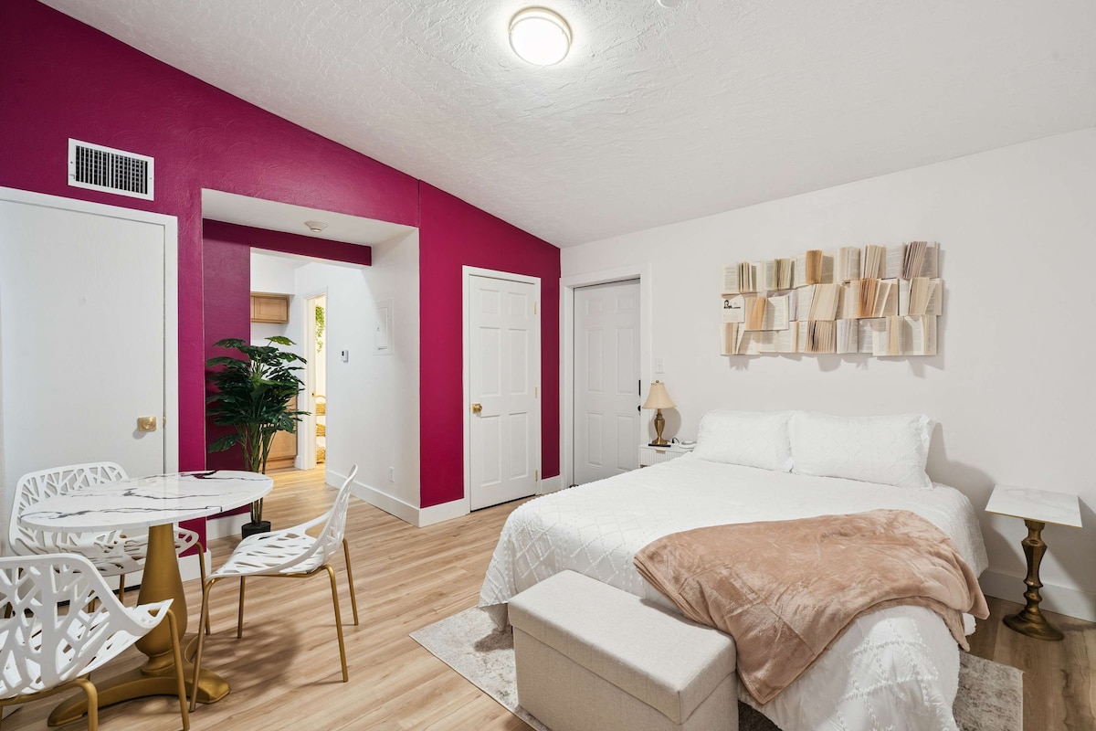 Experience boutique-style luxury in this elegant downtown Davenport 1 bedroom apartment. Rich navy walls, warm wood floors, and curated modern décor create a refined atmosphere. Enjoy a serene bedroom nook, a stylish living space, and a beautifully updated kitchen and bath. Nestled in a newly renovated historic building steps from fine dining, cafés, and the riverfront. Perfect for students or young professionals looking for an upscale urban retreat