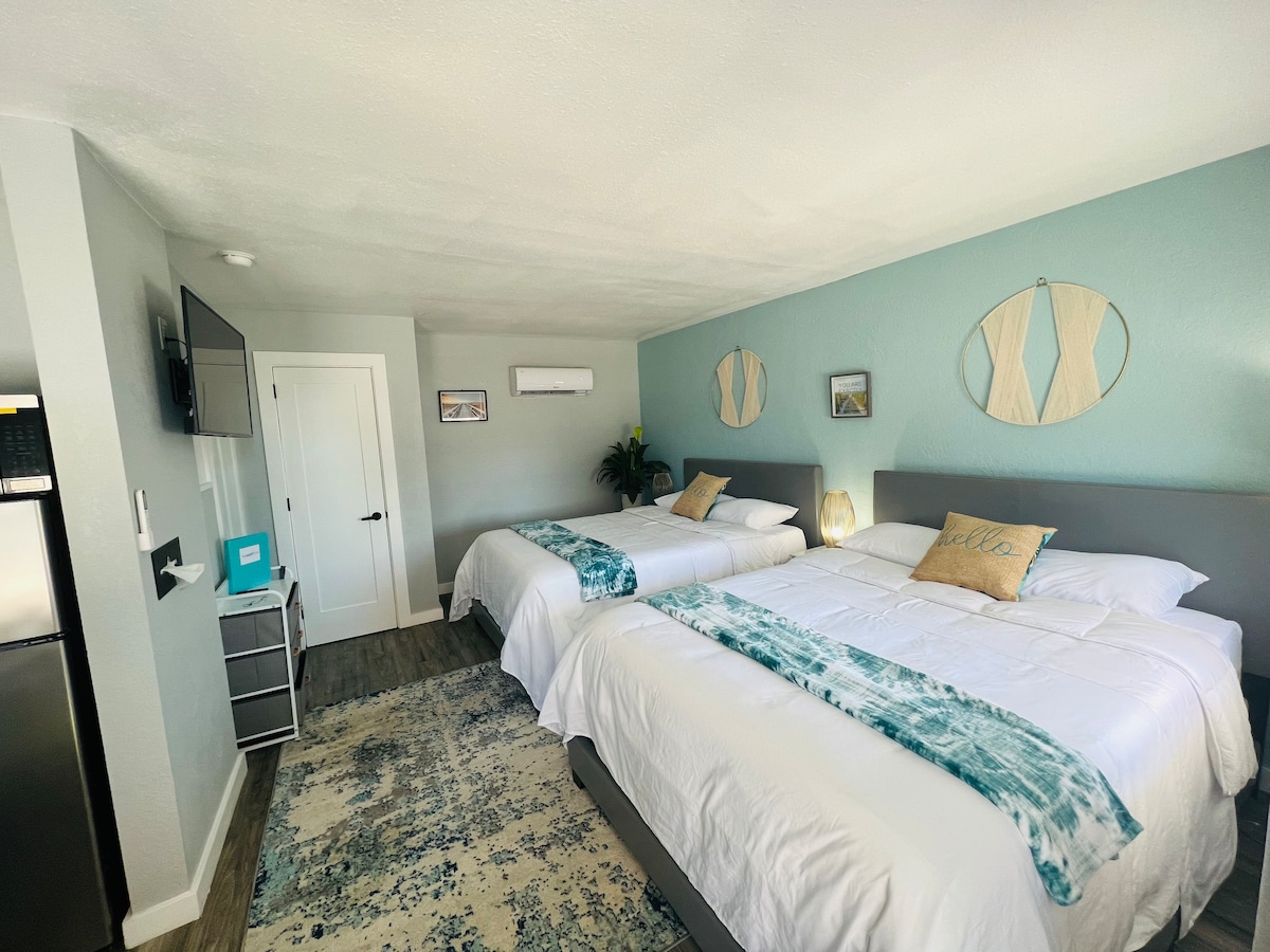 We are one of the closest airbnb to the boardwalk, OnThe Worlds Most Famous Beach with an open Pool 65inch Tv Come enjoy our Newly Furnished Studio with Amazing Top Floor Beach Views. We are the Closest AIRBNB on the Beach to the Daytona International Speedway With king bed and Queen sleeper sofa. Centrally located in the Heart of Daytona Beach. walking distance to the Pier Boardwalk, Restaraunts, and Main Street We have FREE parking for 1 vehicle and provide Coffee,Cream,Sugar,bch chairs