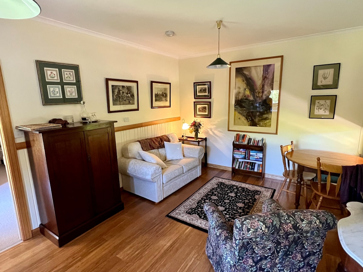 Recently renovated, we offer a quiet, relaxed, historic cottage in the heart of Evandale. Unwind in front of the open fire and enjoy a glass of local wine, surrounded by the picturesque setting and calm country life. Only 5 minutes from Launceston Airport and a short walk to Hotels, Bakery, Cafes for meals, and a short drive to vineyards and historic homesteads.