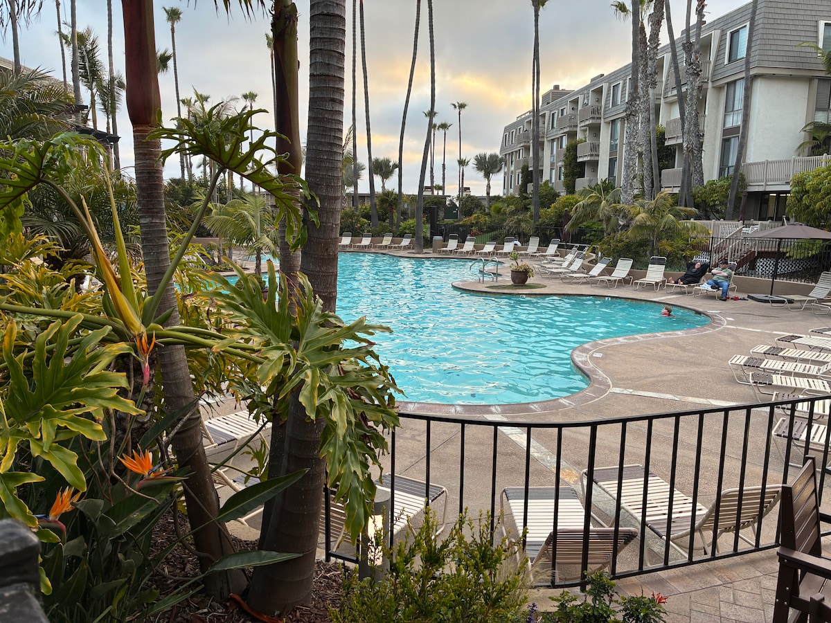 Patio on the Pacific has beautiful ocean views from the living room, master bedroom, and balcony. On a nice day in Oceanside, you can enjoy the sailboats going by on the Pacific from the couch! To relax and recharge, use the buildings pools and spas or enjoy the 5 min walk to the beach + strand. Enjoy working here with 200mbps Internet and a dedicated desk in the bedroom. Our condo is a corner unit on the top floor (accessible via elevator) of building G in the North Coast Village.