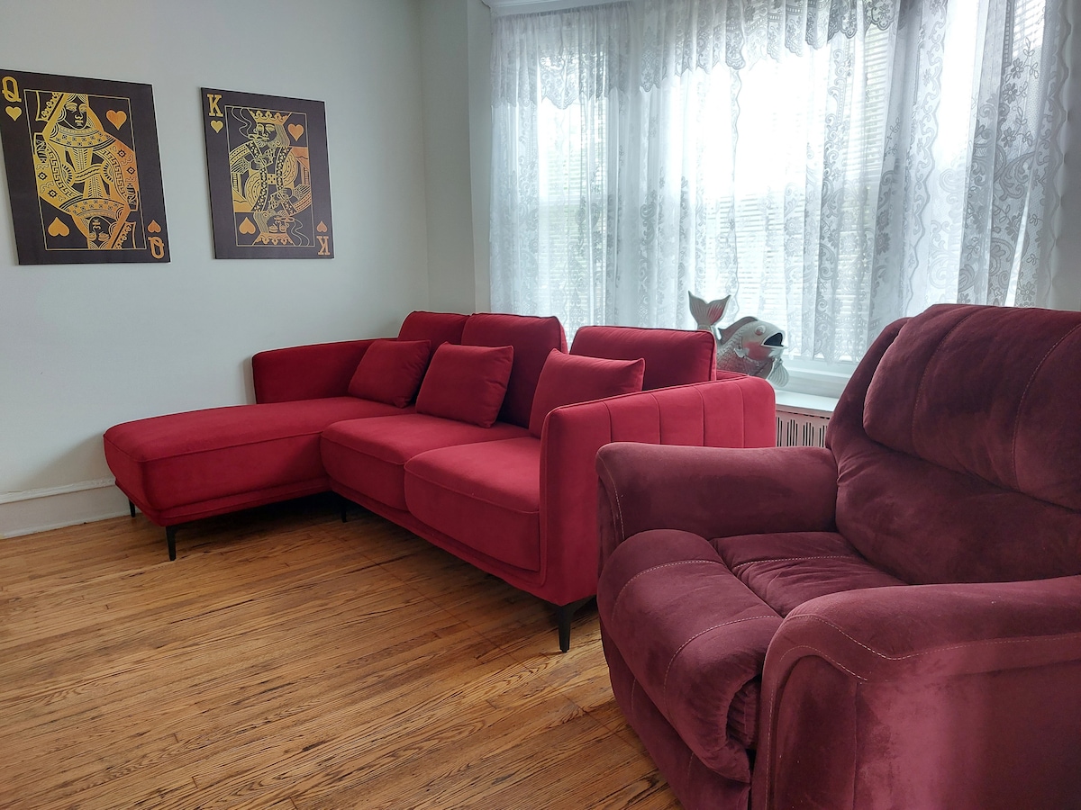 Please note: We require guests to book the total amount of persons staying as we charge per-guest. We do not have a TV and our home is not suitable for unsupervised young children. Between Whitwell’s Delight and Bowers Beach Road, across from the old Tuthill Brothers Farm, we have a quiet space that is perfect for up to eight people to feel at home; great for couples or a tight-knit group of friends or family. We also have records, board games and puzzles to enhance the feeling of a cozy stay.