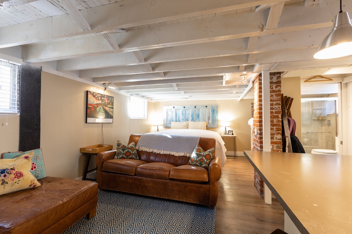 Garden-level studio near Wash Park, Gaylord St, Pearl St, and DU. You’ll love its urban chic decor with exposed brick and beams. It can easily accommodate a couple, DU parents visiting the kids, or solo travelers. Private entry w/ kitchenette, 3/4 bath, 2 bikes, king bed, & queen sofa bed. Explore historic neighborhood shops and restaurants, or stay in for movie night on the large flatscreen with AppleTV. Free assistance available for booking a car, tours, and restaurants. All are welcome here!