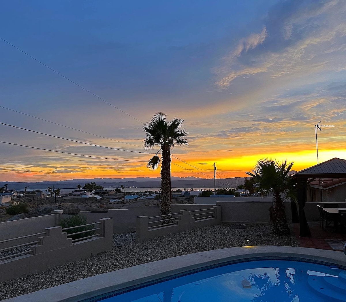 REFRESHED HOME 2024 - This Tropical Oasis Pool Home with Backyard Misters is waiting for you! Our home features 3 bedrooms & 2 bathrooms & is Immaculately clean. This home is conveniently located near everything in Lake Havasu & minutes away from Windsor Launch Ramp. It has new paint, new appliances, new towels, new cookware, 75" smart TV in the living room & 75" in master, BBQ, & much more! This home is perfect for bringing your family or entertaining your friends any time of the year.