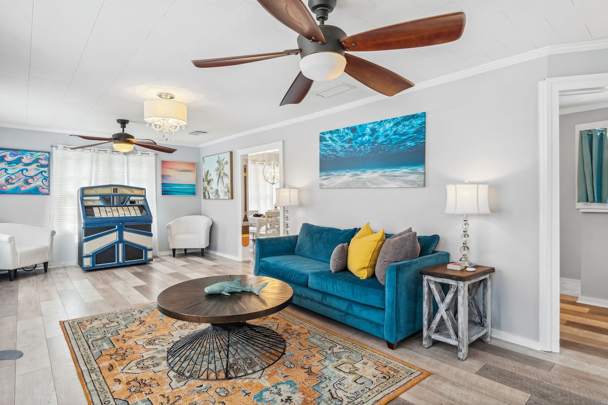 - One block from the Crystal Beach area of Destin - 0.6 miles to Destin Commons w/ Whole Foods and shopping - 1.0 mile to Publix - This is the UPSTAIRS UNIT (downstairs rents separately through same host.) Each unit is fully separate. The Destin Doublemint, a bright and airy one-bedroom cottage, is the perfect spot for your beach vacation. It's less than a 2-minute walk to the sand, making it easy to pop back for a dip in the pool or a movie in the AC before walking back over for sunset.