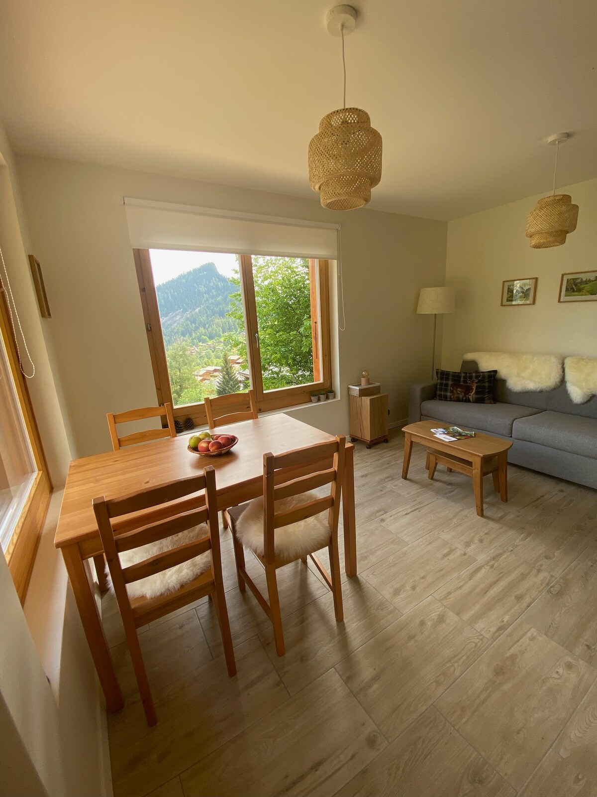 Apartment for 4 adults (maximum) + 4 children (- 16 years old) in a new chalet, 10 minutes' walk to the village, shops and ski lifts. Splendid 180° view. Absolute tranquility at the end of the road. Large terrace to enjoy the sun even in winter! We live in the apartment above and welcome and advise you with great pleasure on things to do in the area.