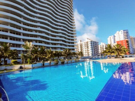 Cozy Suite with spectacular ocean view. Resort with panoramic swimming pool for adults and children, 3 jacuzzis, sauna and Turkish bath. Common area with foosball and billiards. Tennis, beach volley and soccer courts, BBQ area, hammocks and ocean viewpoint. Private Internet in the Suite. Parking and 24 hour security. 1 bedroom suite with 1 Queen bed, 1 auxiliary bed and 1 sofa bed, large TV, equipped kitchen, 2 full bathrooms and terrace with ocean view.
