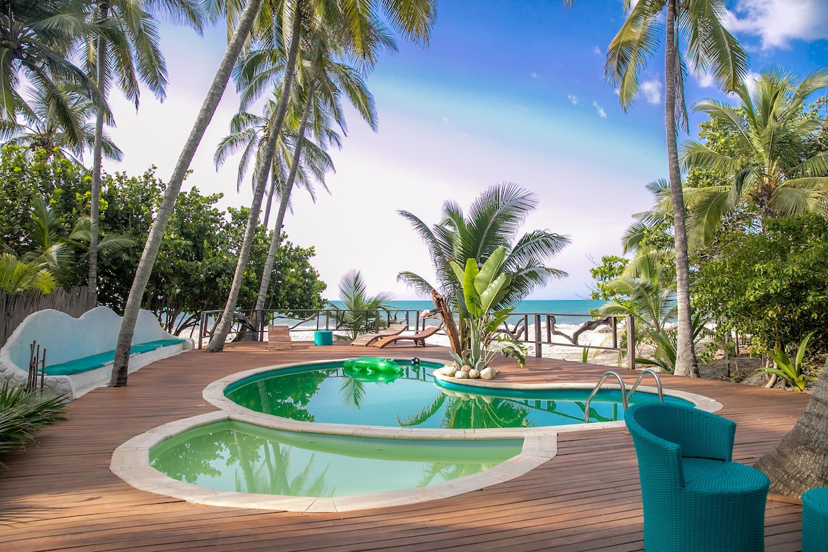 Our home is eco-friendly, comfortable, private, and very cozy. Located in a natural paradise on the ocean and surrounded by tropical rainforest. If you're a nature lover, you're in the right place... Beach, birds, monkeys, lush views, and meditation in privacy and tranquility, ideal for relaxing. We're equipped with solar panels that guarantee a continuous, uninterrupted power supply for a worry-free stay. Wi-Fi is also available at all times.