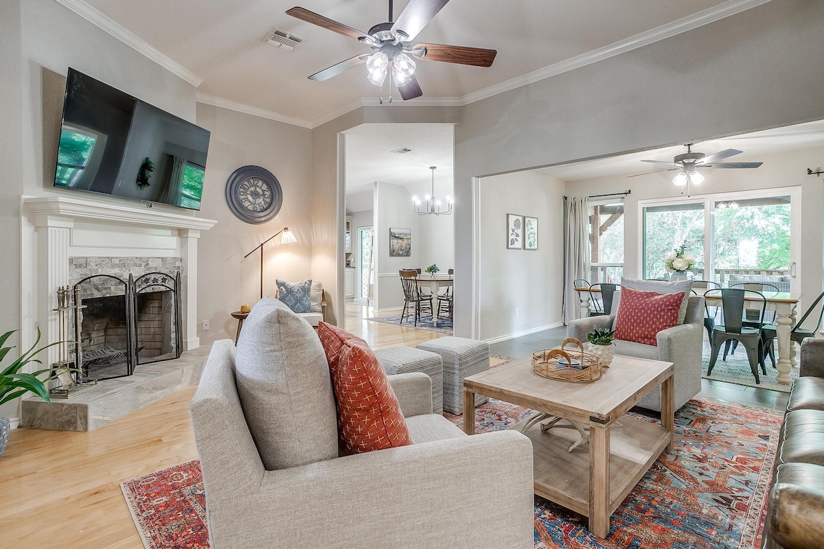 Escape to this relaxing, stylish, and pet-friendly retreat in a golf course neighborhood near Lake Granbury. Enjoy stunning sunrises, cozy nights by the fire pit, and a playful loft space. Located just 1.5 miles from a public boat launch, there’s room to park your boat trailer. Explore historic downtown Granbury, filled with shops, restaurants, wineries, and entertainment. Perfect for couples, families, or friends, this modern getaway blends comfort, charm, and convenience. Book your stay today!
