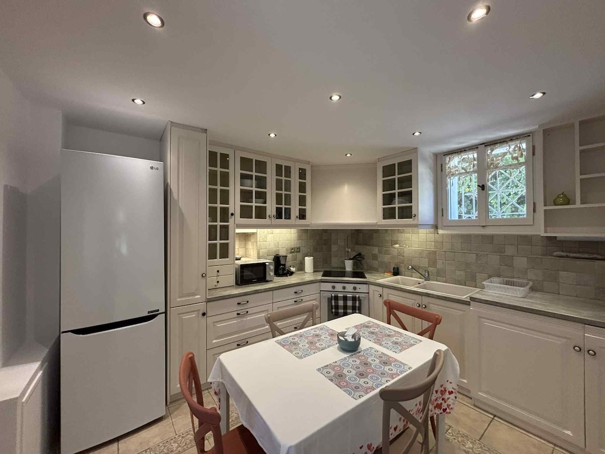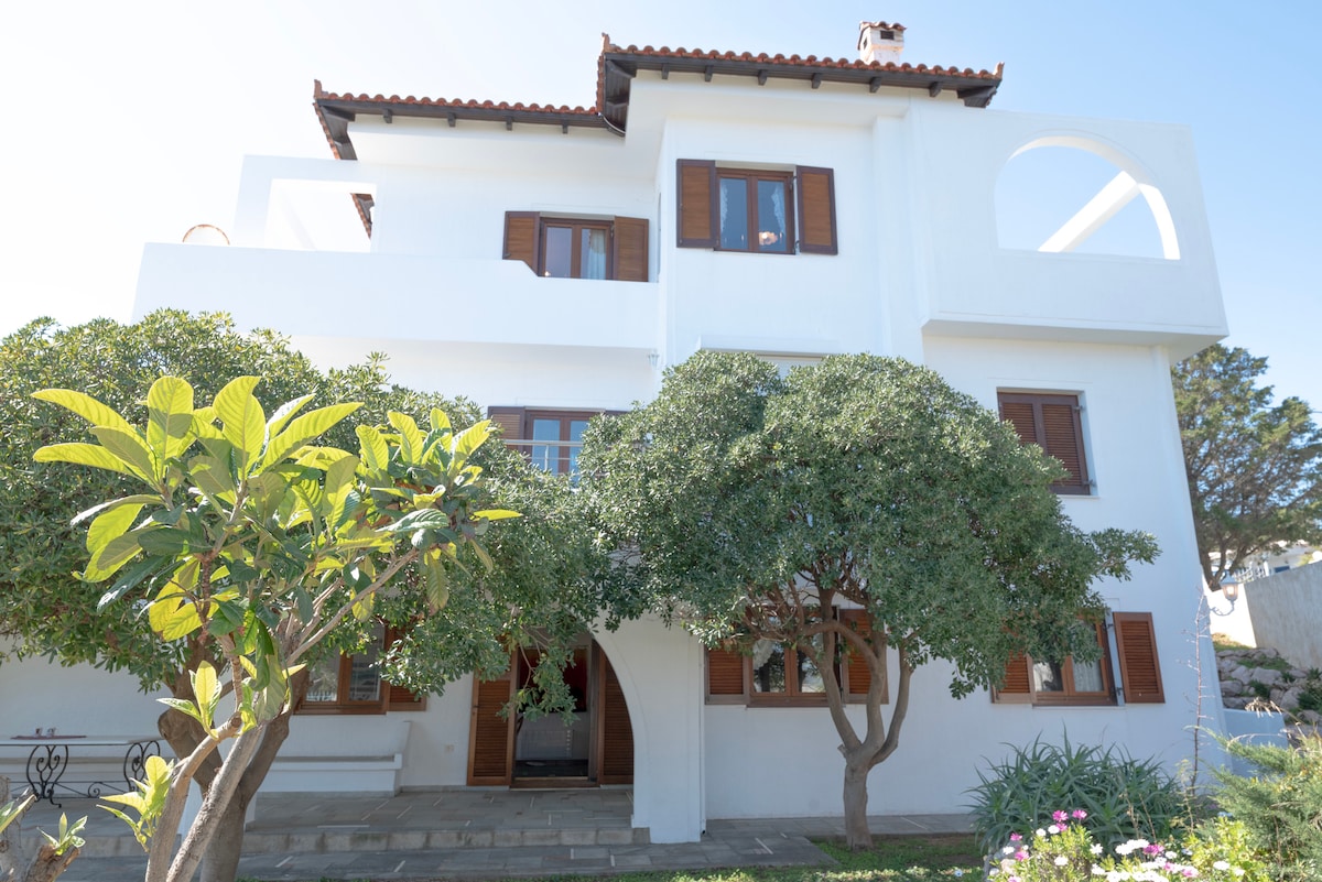 Maisonette of 130m2, accomodates up to 8 people, 3 bedrooms with A/C, 2 bathrooms, 3 terraces with view of the sea, islands of the Aegean, gardens and lush forests. Furnished and fully equipped, 1 room with double bed, single bed and office, another with double bed and one with triple bunk bed. There is also an outdoor dining area with seaview, a sitting area with BBQ, mosquito screens, fireplace, heating, Smart tv with Netflix, Satellite TV, homecinema, dishwasher, washingmachine, microwave.