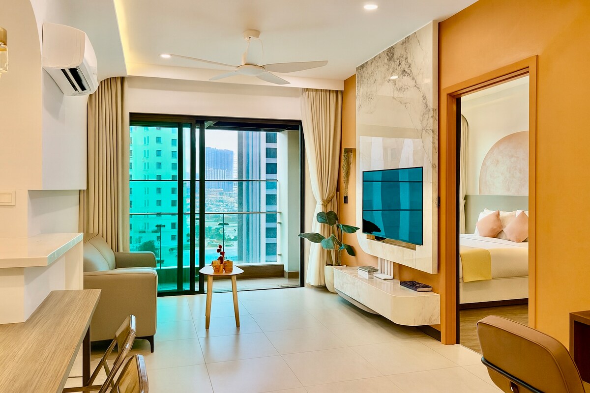 -Since 1st Jan 2026,the platform increased fee and tax, if the rate hasn't reached your budget, we are open to negotiate to have win-win solutions. Do not hesitate to drop us a message here. Prefer for week/ mid-long term rent -Modern studio is located in prime central in Dist 4, only 10-15mins by car/grab to reach Dist 1 with all tourist attractions and everything you need. -This studio included fully furnished: kitchen, washing machine and dryer, big smart TV, gym, sauna and 2 swimming pools.