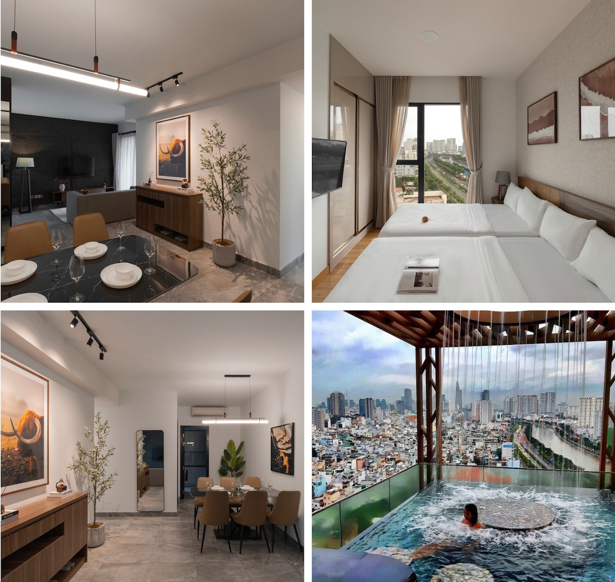 Spacious Duplex | 4 Ensuite Bedrooms | Private Rooftop Pool HORIZON HAVEN Our home is a 2-story suite that comfortably hosts up to 8 guests & children. It features its own entrance, pool, garden, & kitchen—yours to enjoy. Located in a quiet, upscale neighborhood in District 7, the duplex sits in a building with just 1 other unit. Step outside to a peaceful park and scenic eco lake. Within walking distance, you’ll find a variety of restaurants, cafés, spas, & LOTTE supermarket.