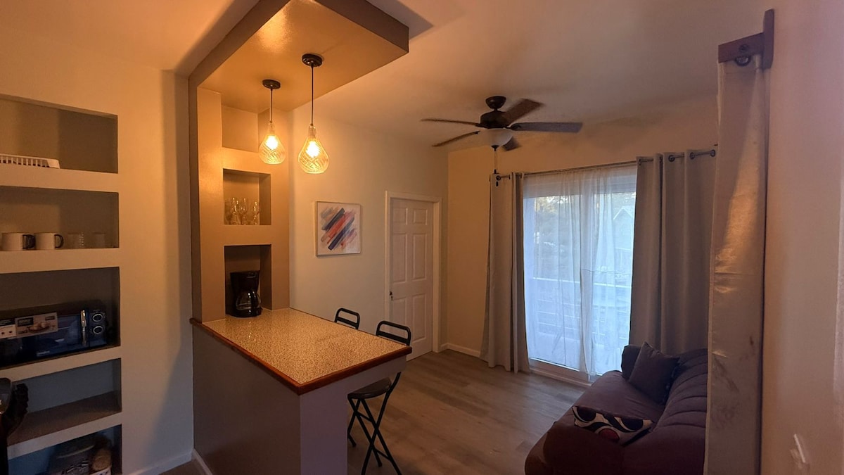 Located pool side this amazing space is a large open concept with vaulted ceilings. The suite has a queen size bed and a well-appointed bathroom. It features a full kitchen with all you’ll need for your stay. It has a spacious livingroom area, and a separate dining area. Spend your day at our infinity pool and hot tub surrounded by tropical forest and landscaping, just steps from the beach. . There are two 5 star restaurants directly below us on the beach for your dining convenience