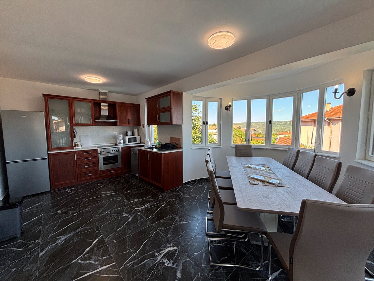 This huge holiday villa, located between Baltschik and Varna, leaves nothing to be desired: its location in the village of Rogachevo impresses with tranquility in combination with good infrastructure through small shops and a taxi company. The sandy beach of Kranewo can be reached in just 10 minutes. The house has highlights such as a large pool, sauna, foosball and much more. With four bedrooms and five bathrooms, it is ideal for large families and groups of friends.