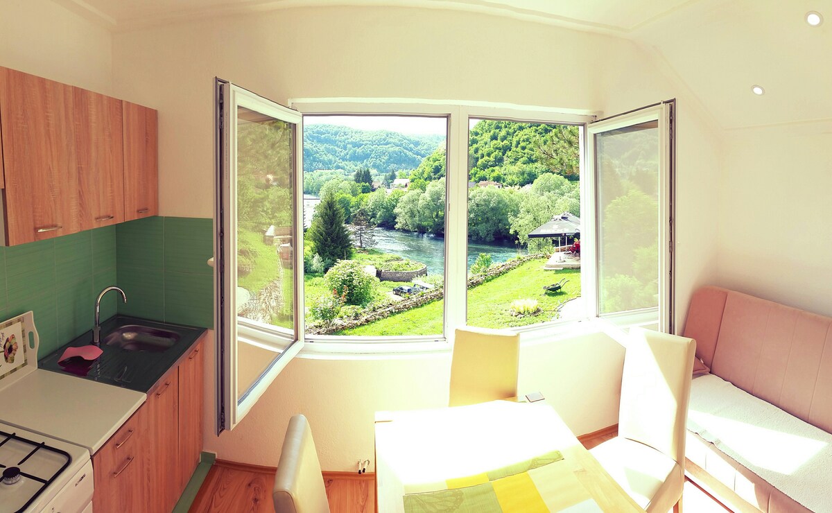 Dear guests, our apartment is located in the small beautiful village of Korana, 3 km away from the entrance to the Plitvice Lakes National Park. The house is surrounded by beautiful nature. The apartment offers a beautiful view of the waterfalls, river and mountains. Apartment contains room with satellite TV, free Wifi, bathroom and fully equipped kitchen. Part of the apartment is also a terrace right next to the river. We are looking forward to your visit!