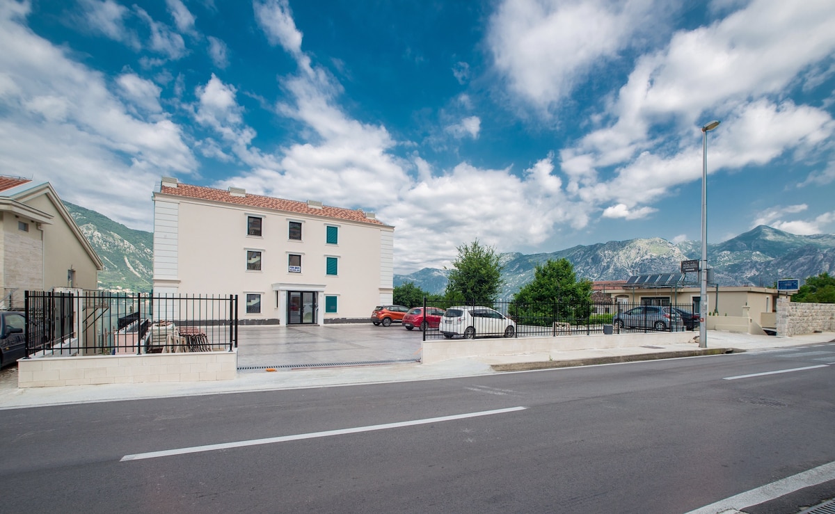 If you want to enjoy the spectacular view of the Boka Bay while you drink your morning coffee or a glass of white wine watching the best sunset on your own terrace, this is the perfect place for you. Just 5 minute walk from the sea promenade, and only 4 km from Old Town Kotor - the perfect location to enjoy the best Kotor has to offer.