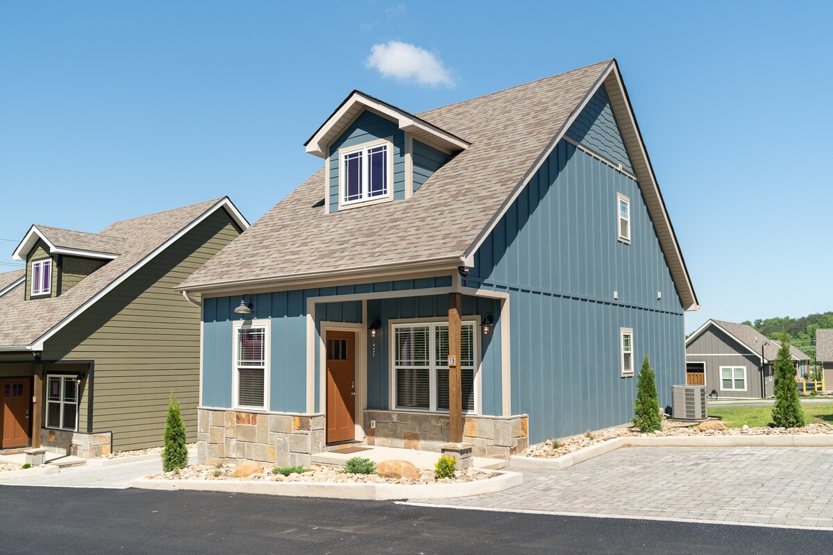 "The Steely Dan" - a tiny cabin w/ huge amenities & modern flair in the heart of Pigeon Forge 5 mins to the pkwy/ 7 to "the Island." Located in the tiny cabin village "The Summit at Ridge Top" comprised of 5 other tiny cabins w/ privacy built into ea cabin. HUGE VIEWS of Mount Leconte out front. Private MOVIE THEATER. Fire pit. HOT TUB & Swings under a covered porch. 1 Bd/1.5 ba. Eat in full kitchen with breakfast bar/workspace. Fireplace. Convenient. Style. Modern. Cozy. 5-10 Mins to it all.